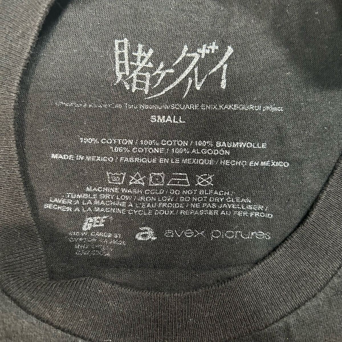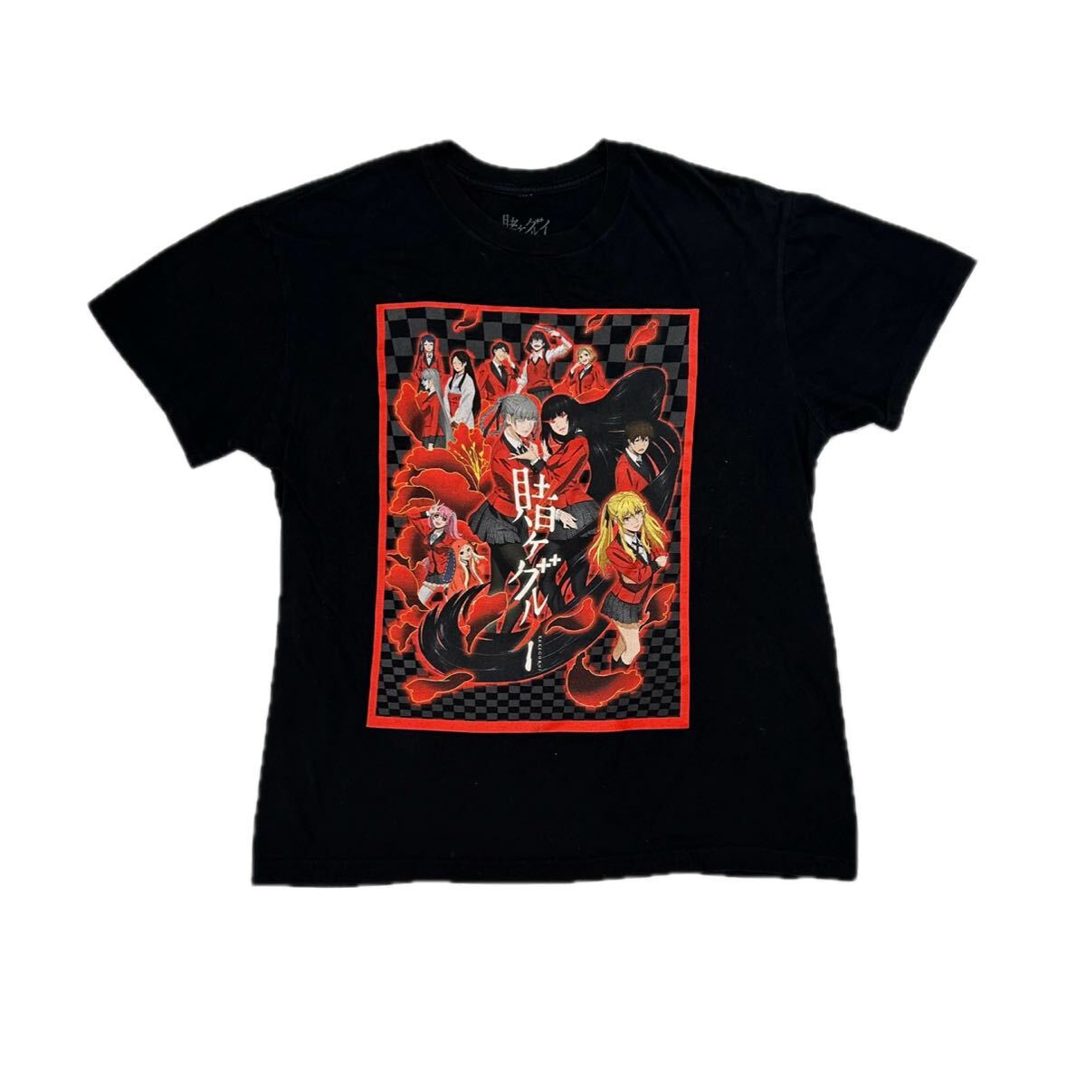 カラフルなアートプリントが特徴の黒いTシャツ。