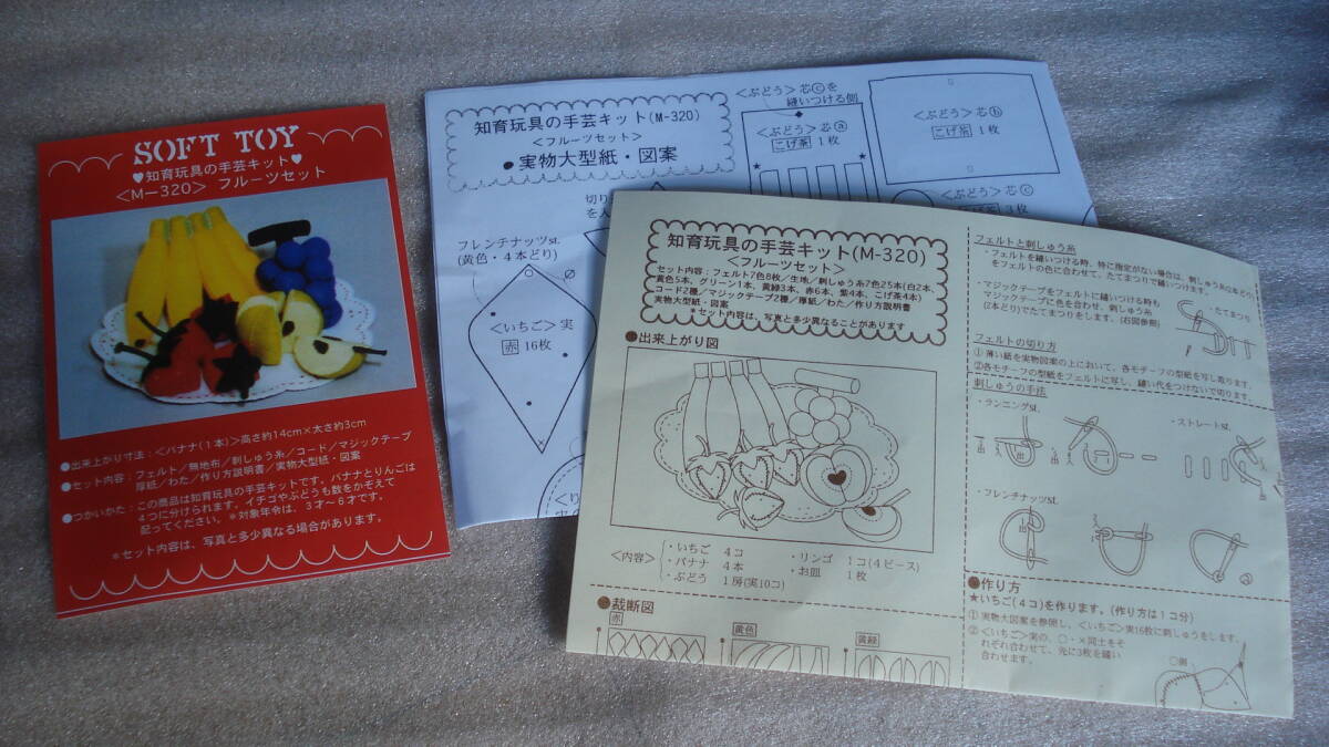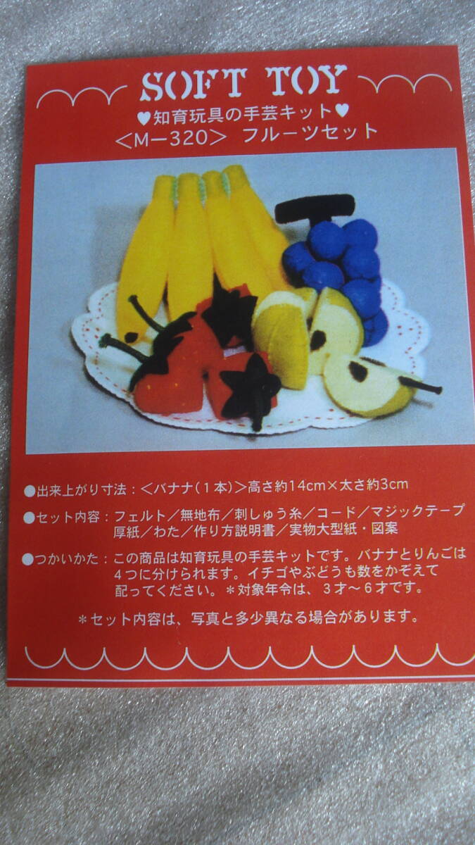 購入後、未使用のまま、暗所保管しておりました。作る時間が取れないので、出品いたします。 ※未使用品ですが、材料パッケージ未開封のため、画像にあるものが全てのお品となります。 気をつけて確認は行いましたが、見落としや細かなパーツ等不足している場合があるかもしれませんので、ご了承ください。 *画像にあるものが、すべての出品物となります。 *収納袋はございません。(フェルトキットのみの出品となります。) *気になる場合は、入札前にご質問ください。 *出来上がりサイズ* 例・バナナ1本 約 高さ14cm×太さ3cm ※説明書、型紙に折れ・ヒヤケなどが見られる場合がございます。 ☆PCでのお色のニュアンスの違いがございますので、ご理解の上ご入札下さい) *気を付けて検品はしていますが見落としがあった場合は、ご了承ください。 ・発送方法・ (*定型外郵便・レターパックプラス・郵パック対応可能です。) ・その他 ・ *自宅保管のお品ですので、完璧を求められる方・ 神経質な方は、入札をお控ください。 *気になることがある場合は、ご入札前にご質問ください。 |