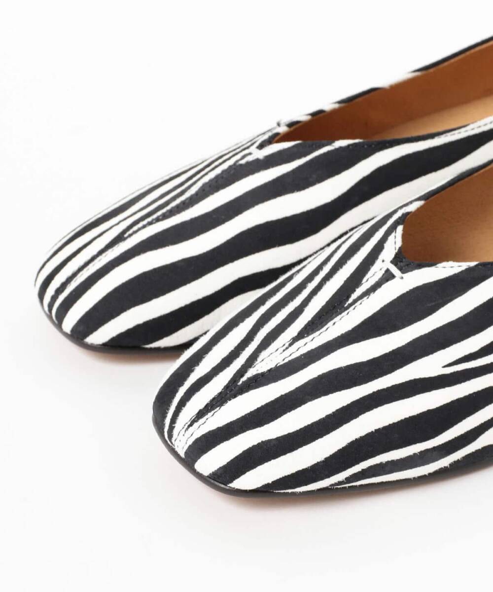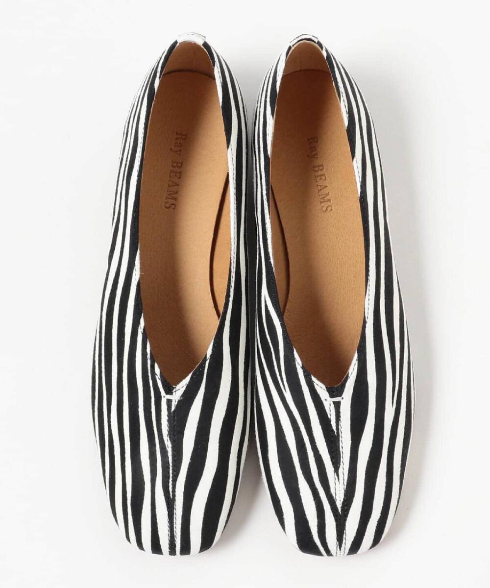新品未使用タグ付き Ray BEAMS レイビームス 1足あると便利なバレエシューズ つま先スクエアで歩きやすくおすすめ 豚革 ゼブラ柄 24cm 24.0