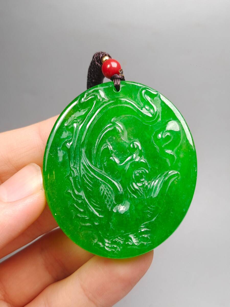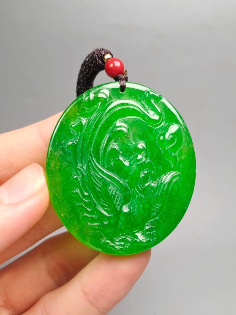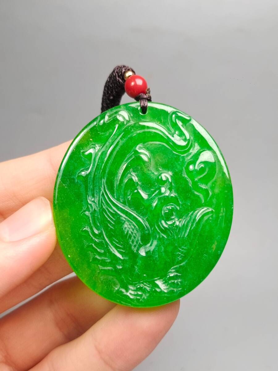 『清・翡翠細密彫・沁色自然・盛世鳳凰ペンダント・根付・裝身具』極細工 置物 古賞物 中国古玩 中国古美術