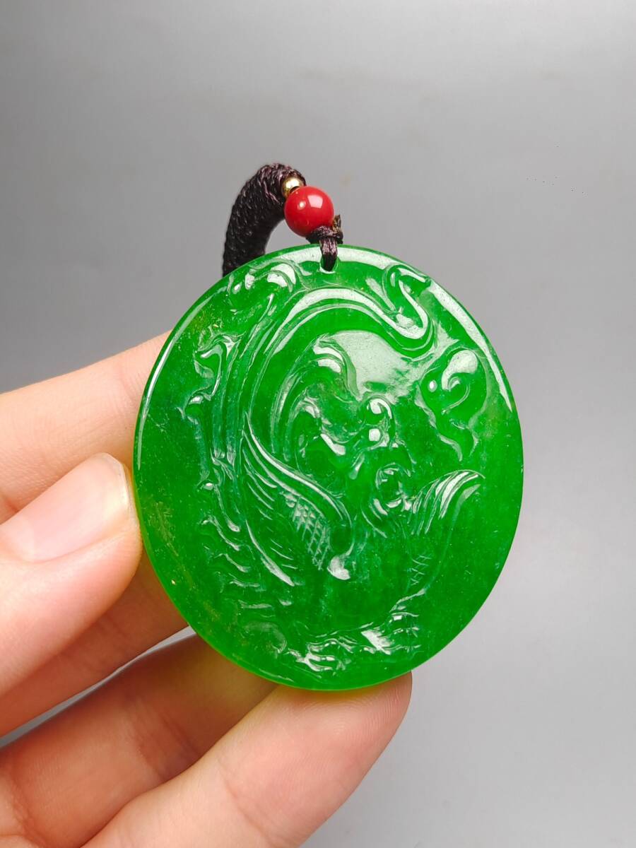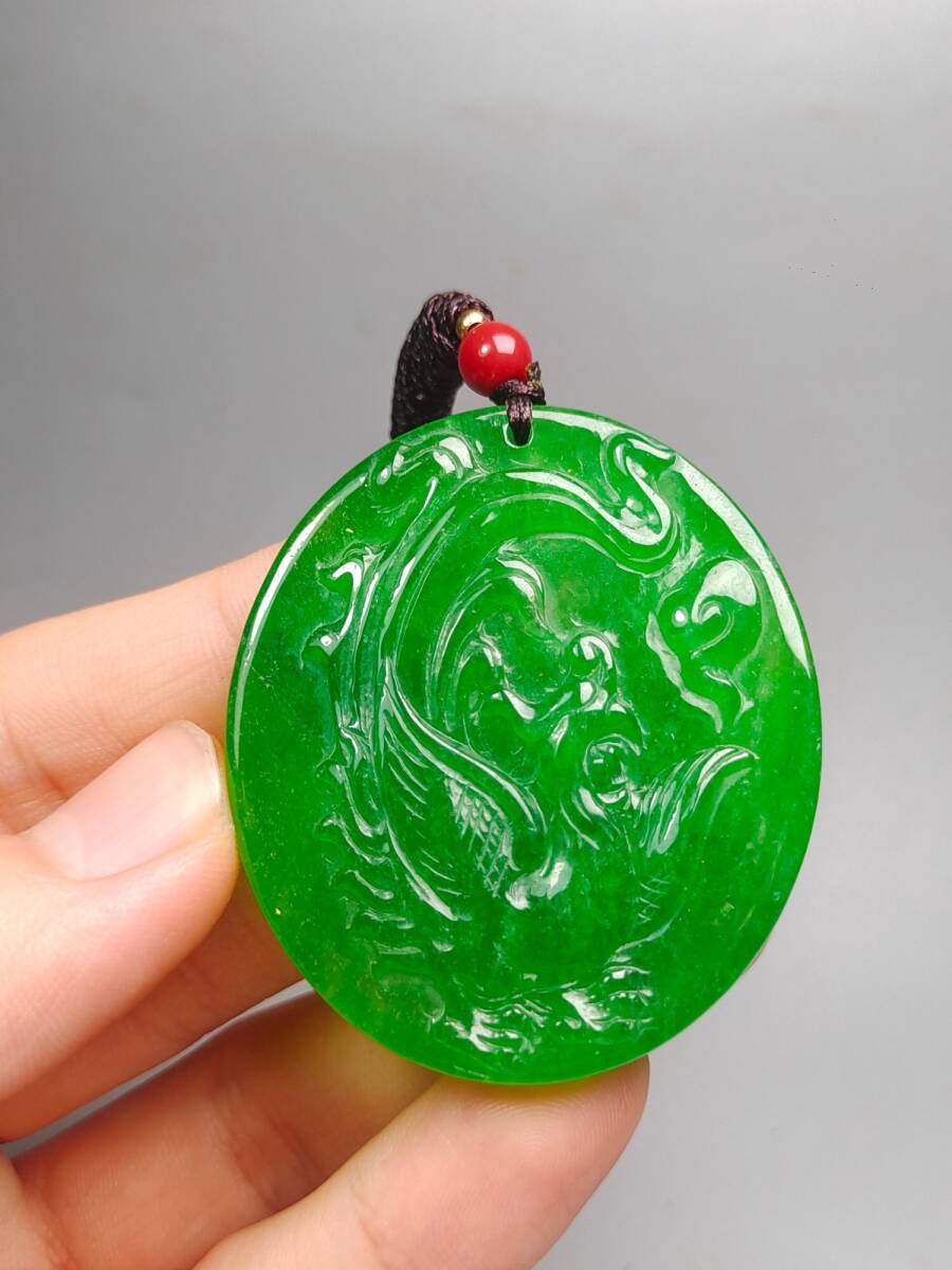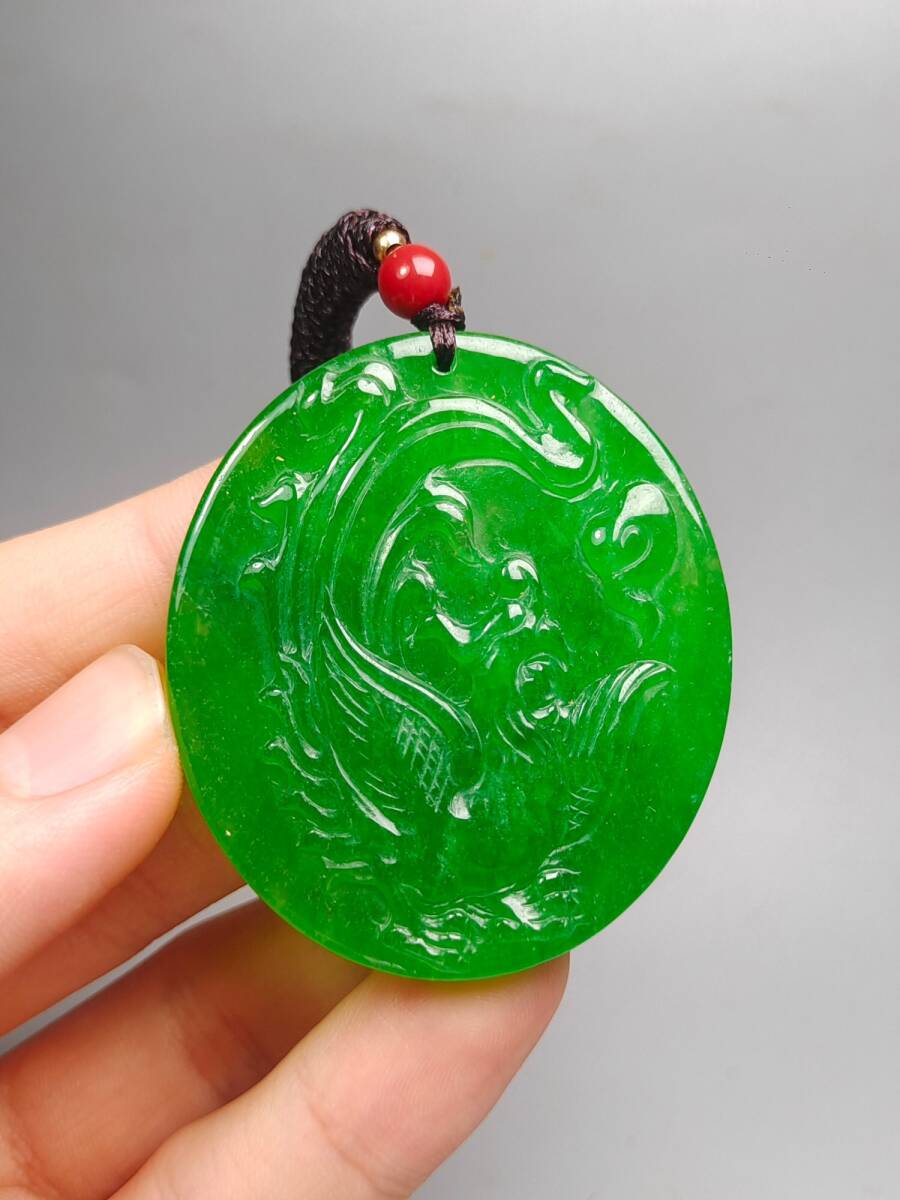 『清・翡翠細密彫・沁色自然・盛世鳳凰ペンダント・根付・裝身具』極細工 置物 古賞物 中国古玩 中国古美術