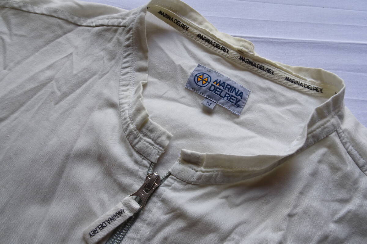 MARINA DELREY/マリナデルレイ/ブルゾン/ジャンパー/ライトアウター/薄手素材/前ジップアップ/イカリ柄ボタン/白/ホワイト/Mサイズ(9/2R7)