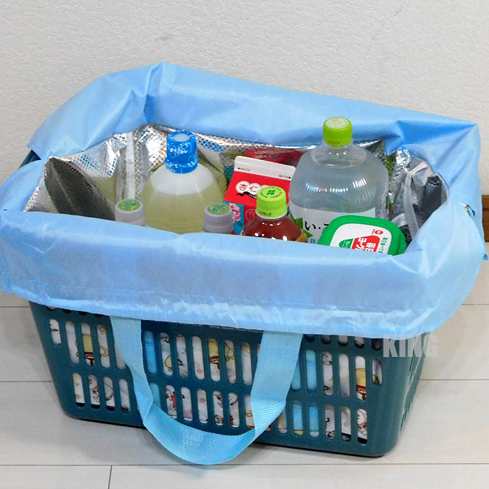 バッグを広げると、レジかごにしっかりとフィットするサイズ。