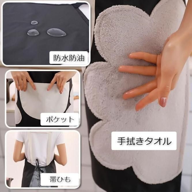 このエプロンは、両側に吸収性フリースタオルが付き!調理中にも、手を簡単に手をふけます♪