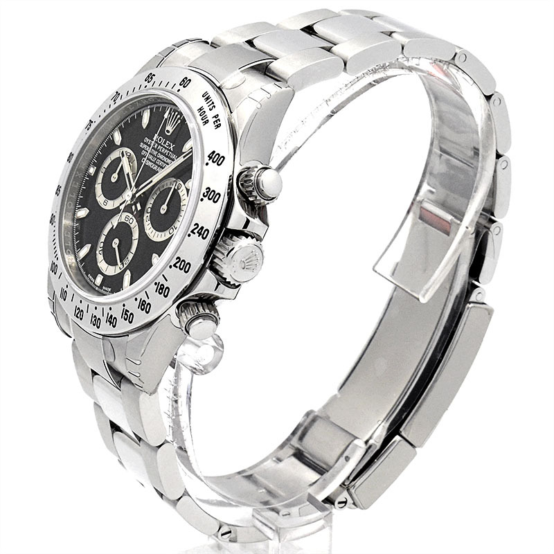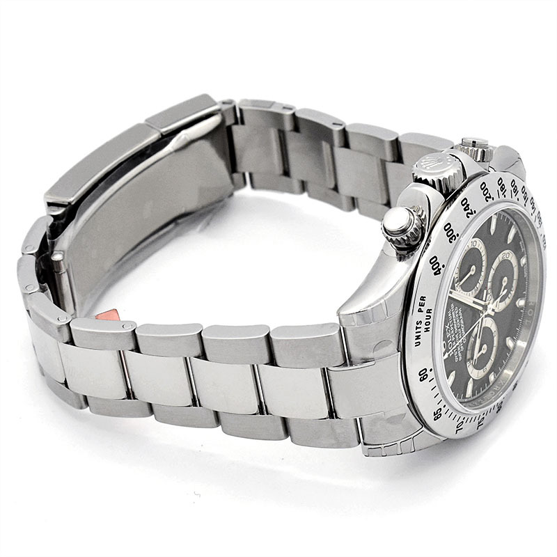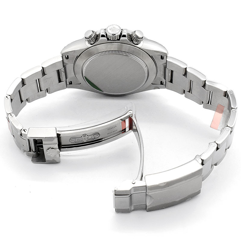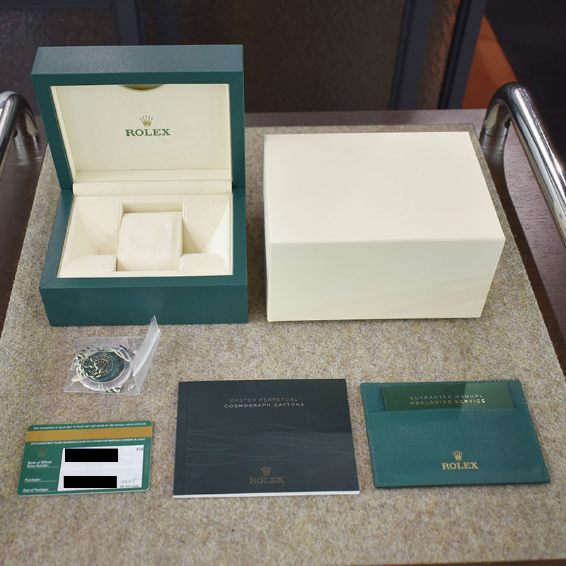| 店長メモ | ロレックススポーツのフラッグシップモデル「デイトナ」は誰もが憧れるロレックスの王道です。 生産終了した事によって少しづつ流通量が減り見かける事が少なくなった印象な上、この個体は昨今目にする機会がほとんどなくなった保護シールが貼られたままの未使用品です。 お探しされていた方はお早めのご連絡をお薦め致します。 |