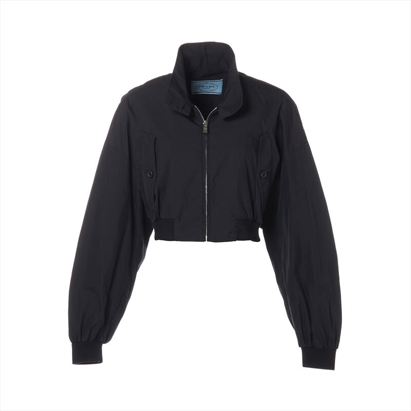 極美品 PRADA Size:38 コットン ショート丈 クロップド バッグトライアングルロゴ ジャケット ブラック