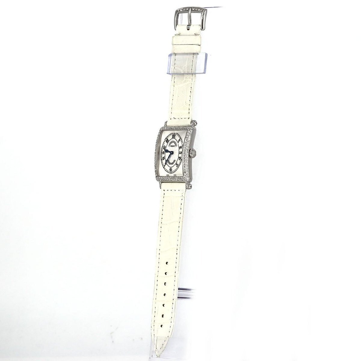2000年に登場した、アールデコ様式が美しい「ロングアイランド」。ホワイトゴールド製のケースとラグに、ダイヤモンドを豪華に敷き詰めたモデルです。清雅なシルバー文字盤には美しいギョーシェ彫りを採用。鮮やかなブルースチール針が、知的なアクセントとして映えます。優雅なビザン数字とダイヤモンドの輝きが調和し、腕元に上品な華やかさを演出。日常使いしやすいクォーツ式の宝飾時計です。