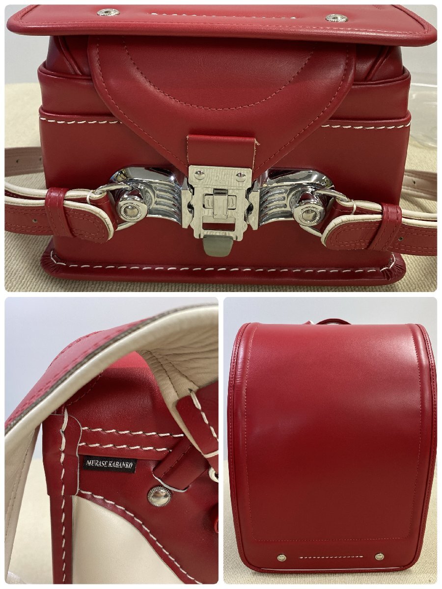 【中古品】ランドセル 村瀬鞄行 匠 MURASE KABANKO 牛革 レザー A4 レッド 赤 シンプルランドセル MADE IN JAPAN クリアカバー付