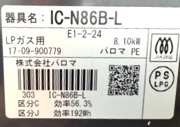A8 福岡発 プロパン LPガス用 パロマ 2口 ガスコンロ(ガスレンジ) IC-N86B-L ガステーブル