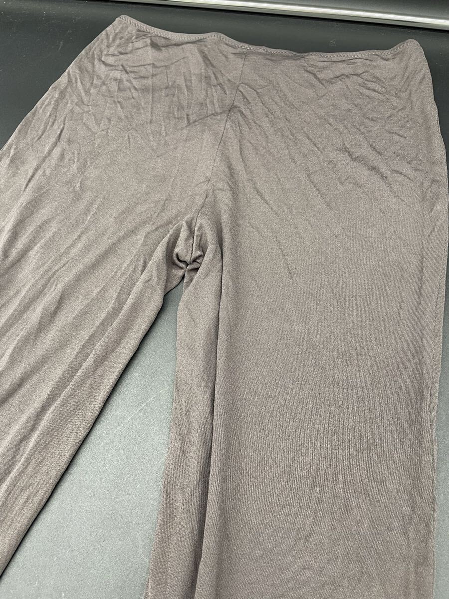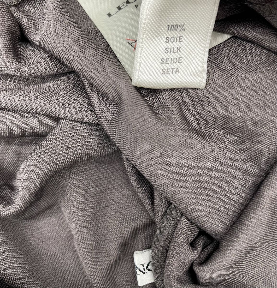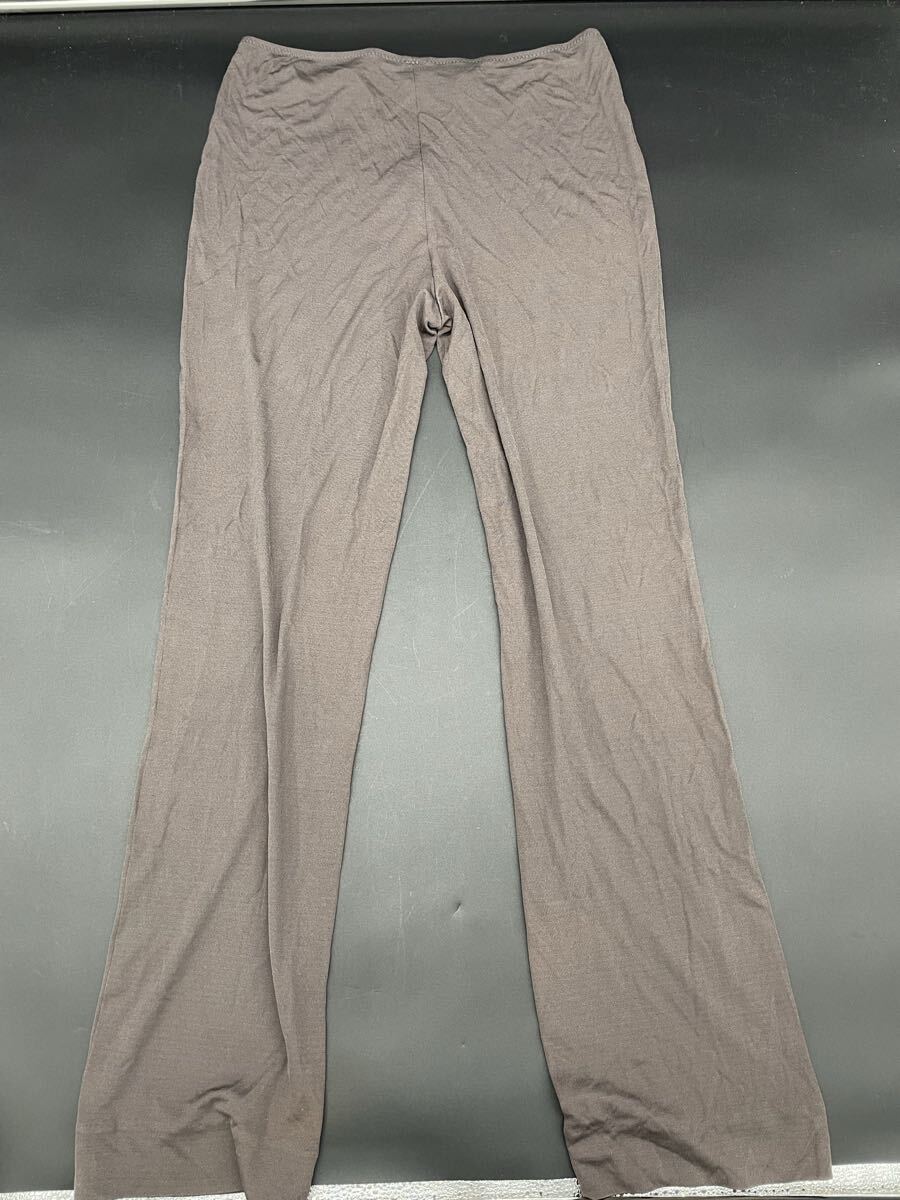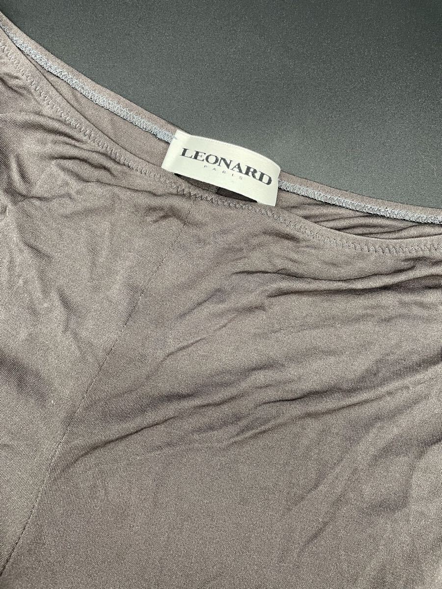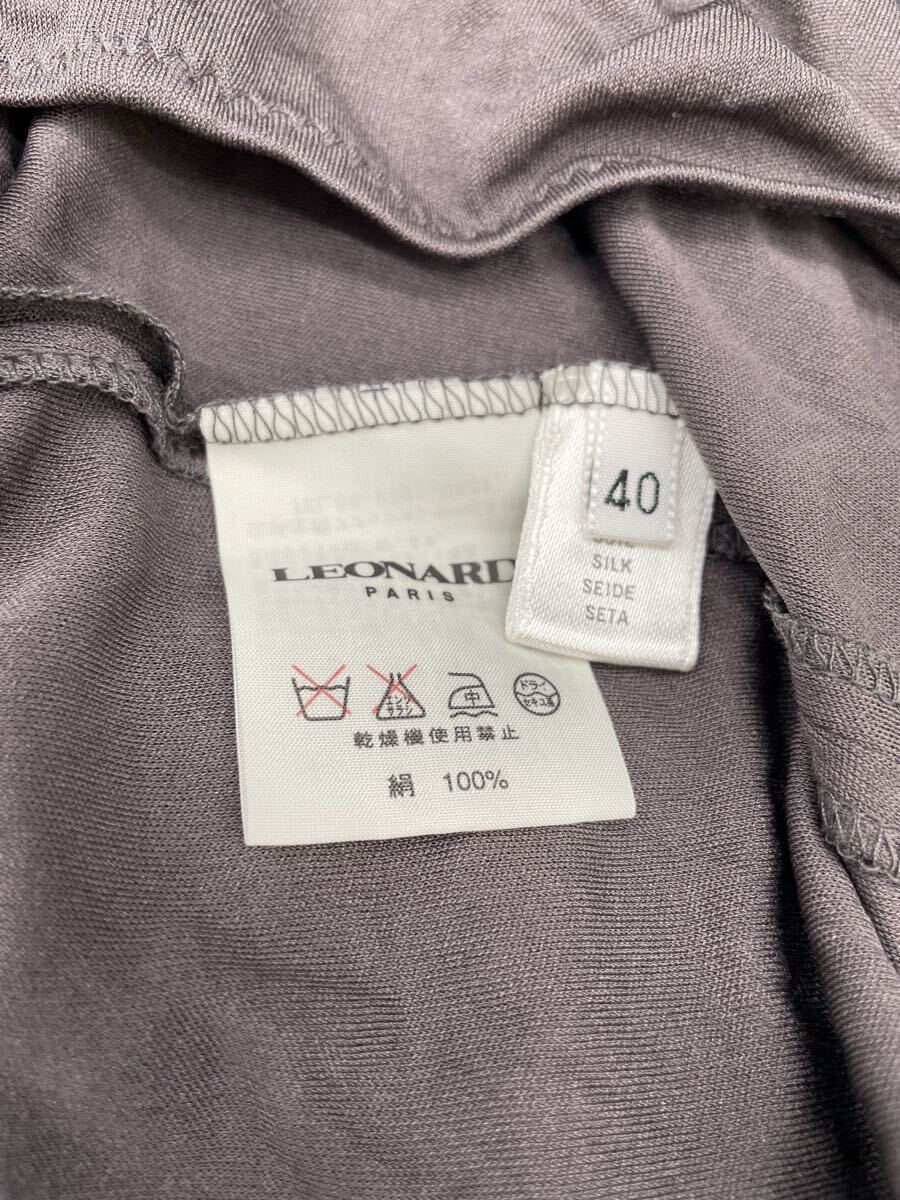 高級感あふれるLEONARD PARISのレギンスパンツです。シルク100%ならではのしなやかな肌触りと光沢感が魅力で、落ち着いたブラウン系カラーが上品な印象を与えてくれます。タウンユースからリゾートスタイルまで幅広く活躍する一着です。