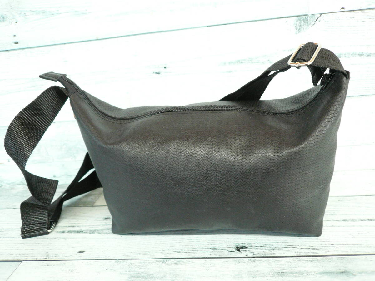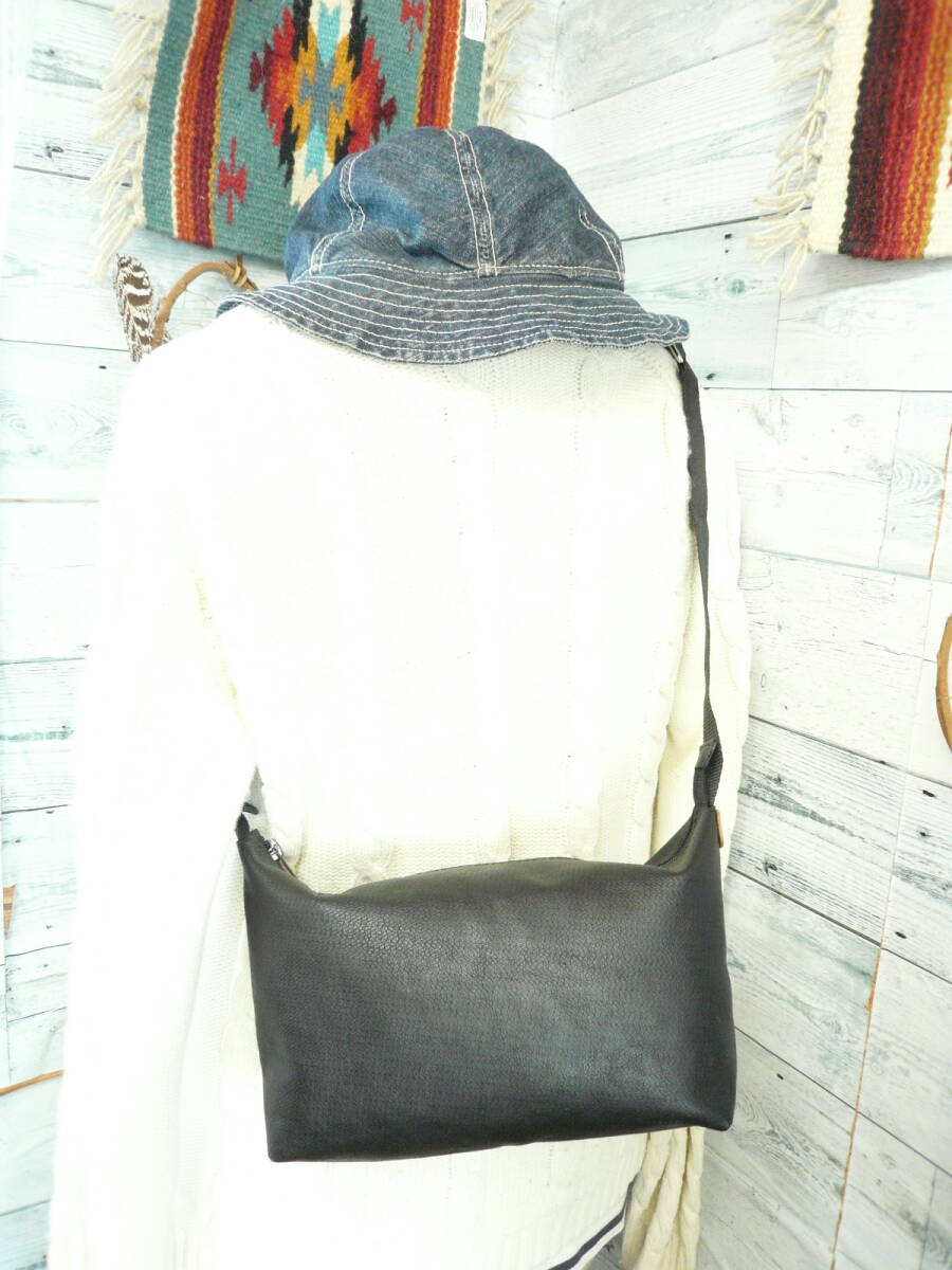【黒ブラック!軽量ソフトショルダーバッグ牛革BLACK】エンボスレザーハンドメイドバッグ 作家手作り日本製バッグ made in Japan 331