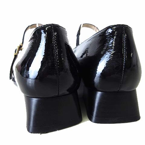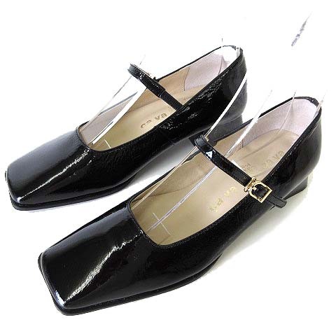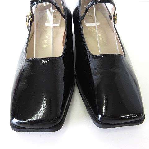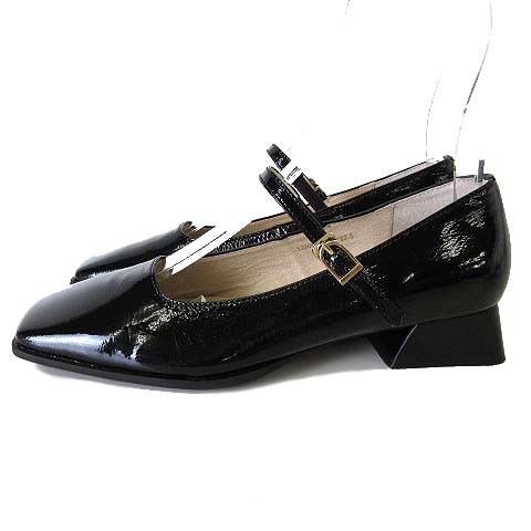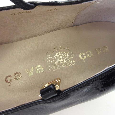 サヴァサヴァ cava cava スクエア ストラップ パンプス メリージェーン 本革 エナメル レザー 22.5cm 黒 ブラック 美品 靴 シューズ
