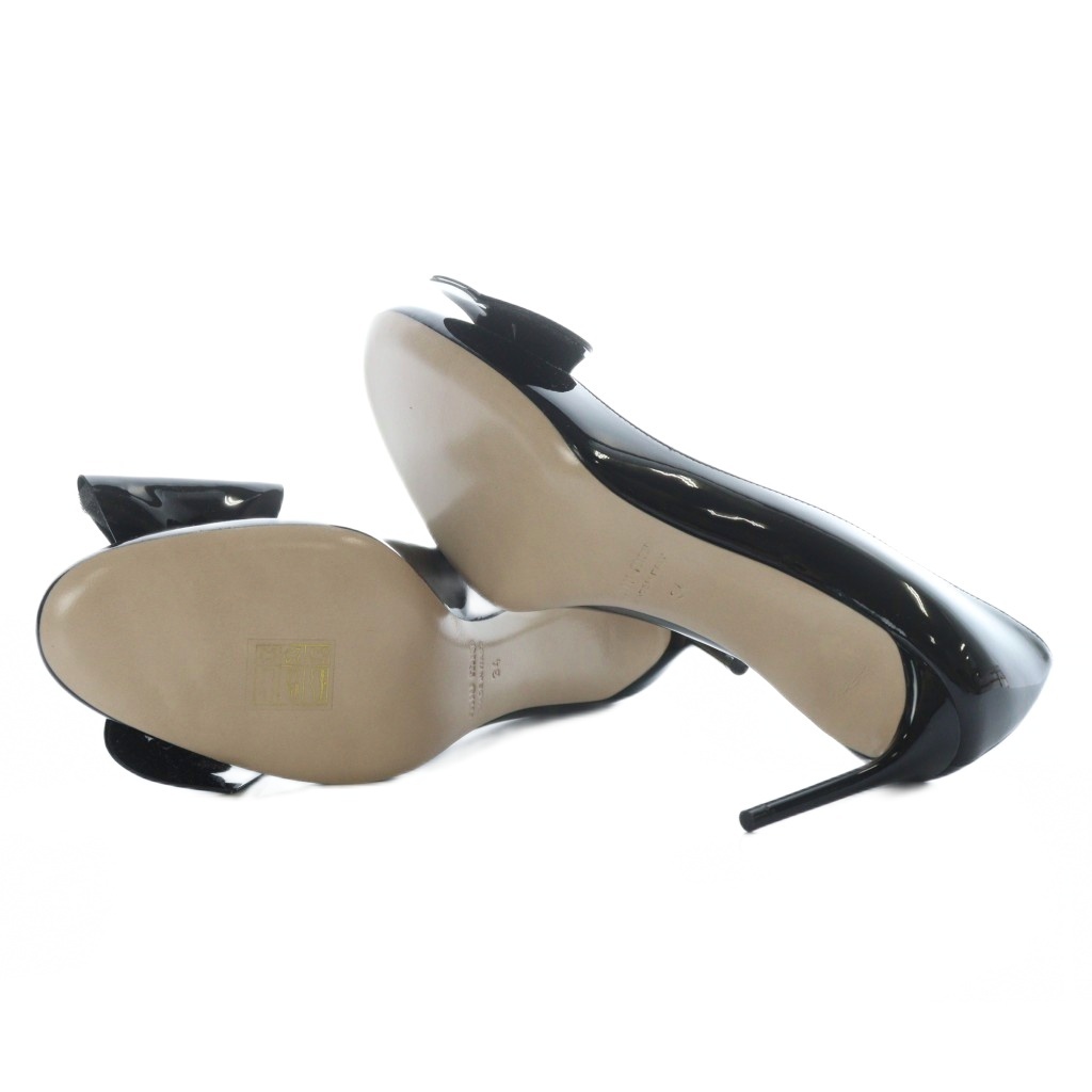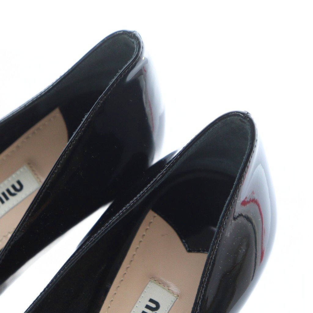 ミュウミュウ miumiu パンプス ピンヒール ラウンドトゥ エナメル パテントレザー リボン 34 21cm 黒 ブラック /RI ■OS レディース