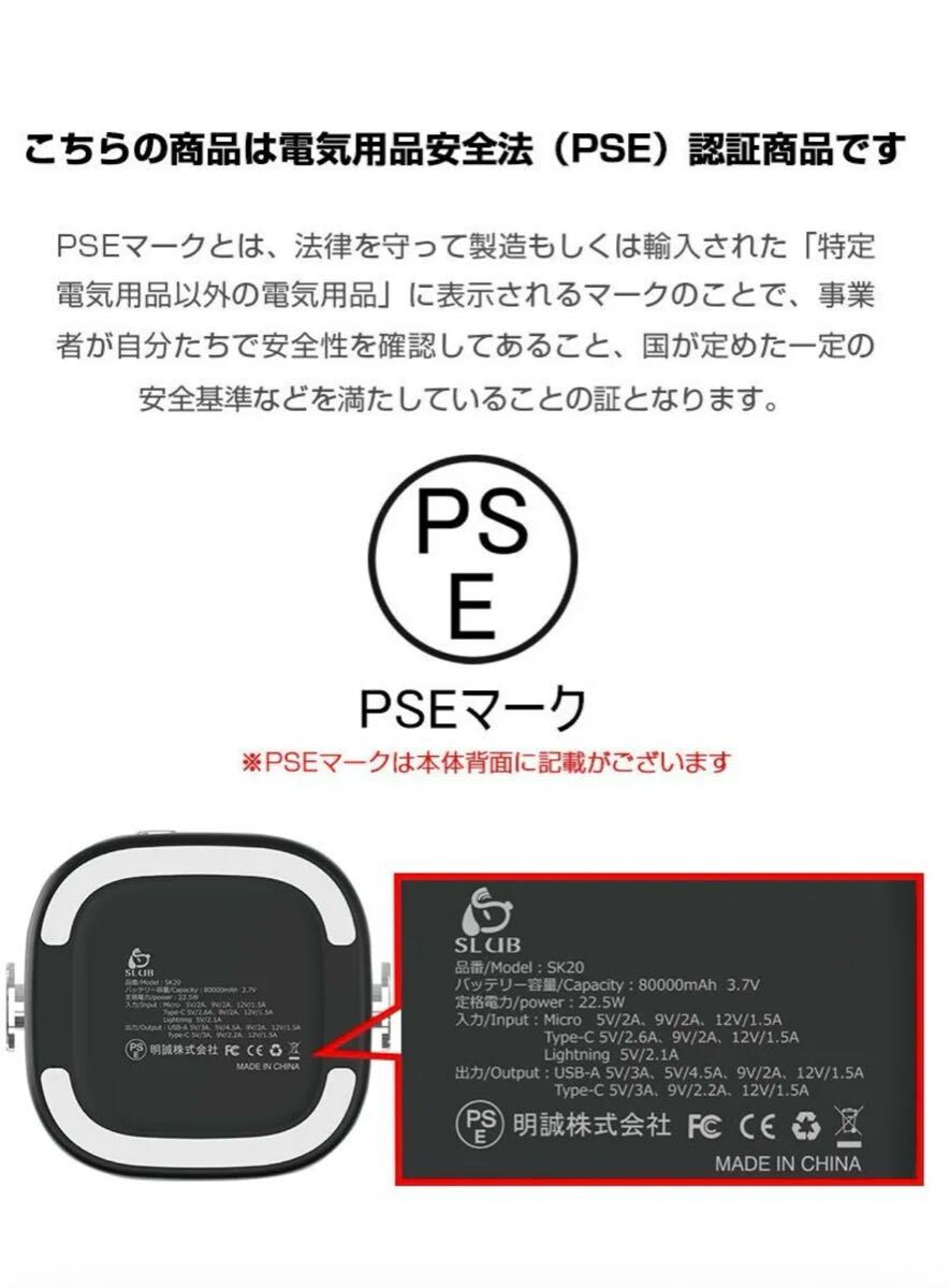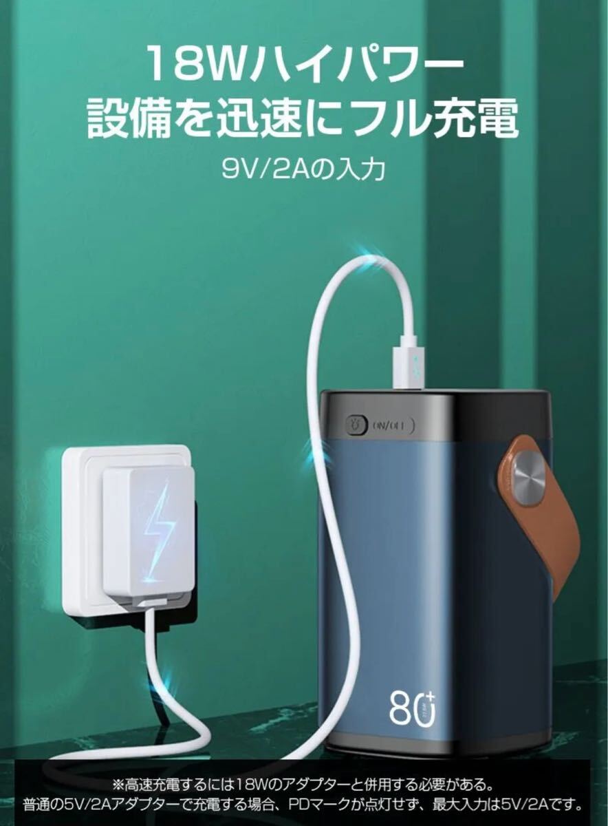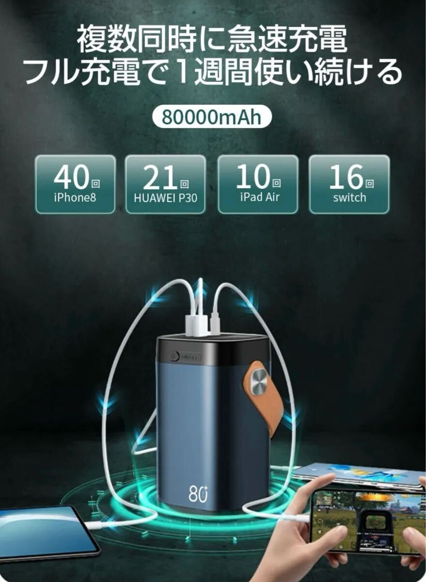 モバイルバッテリー 80000mAh PSE認証済 大容量 急速充電 LEDライト付き