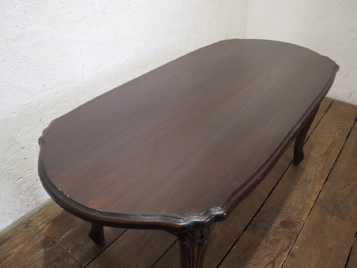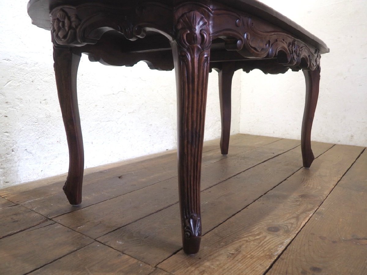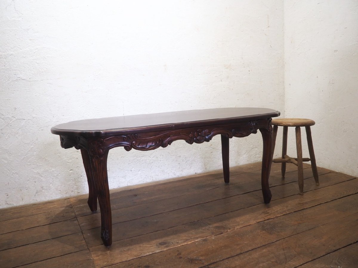 タ荷U0616◆天板W122,5cm×D58cm◆猫脚デザインの古い木製センターテーブル◆ロココ 無垢材 展示台 陳列台 アンティーク調 レトロO(ヤC)松