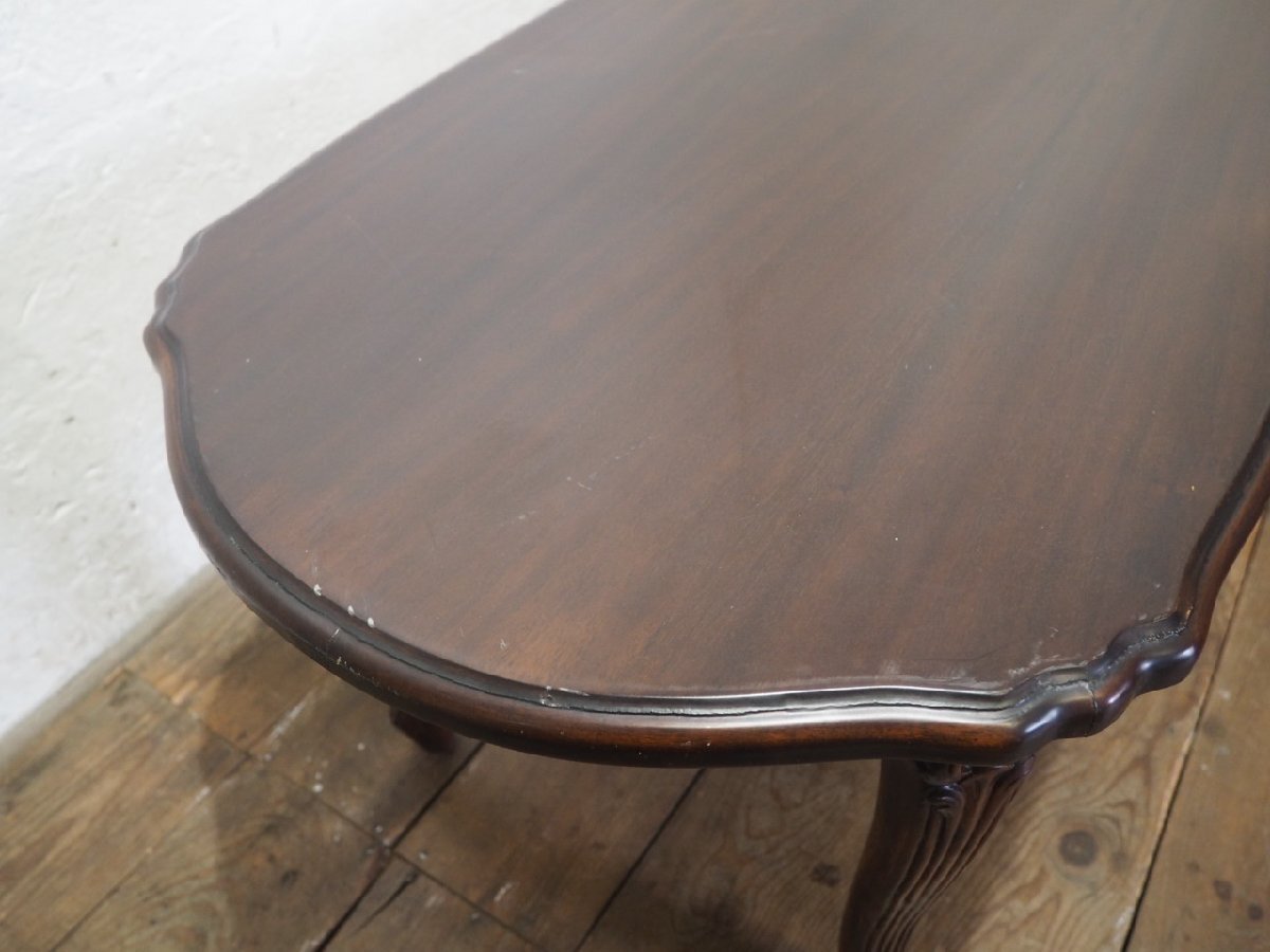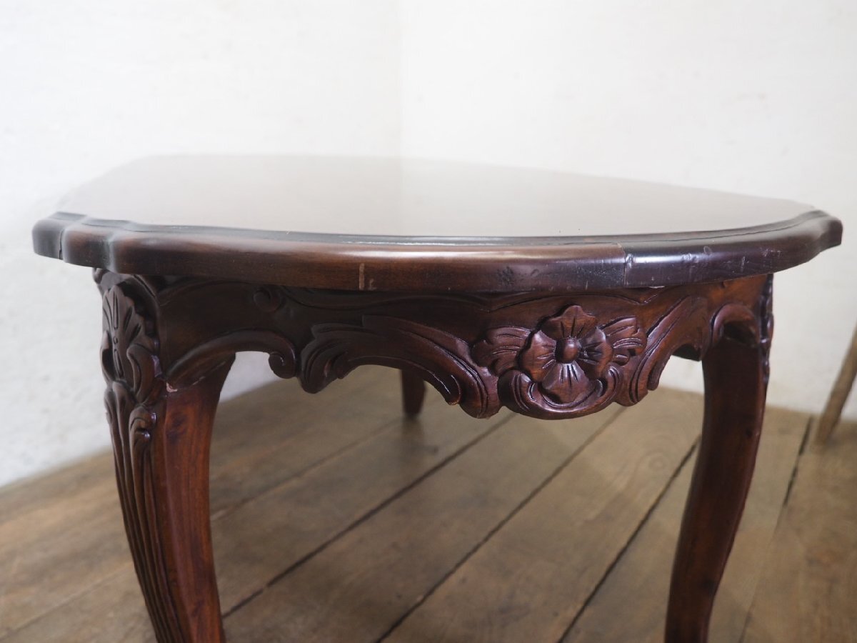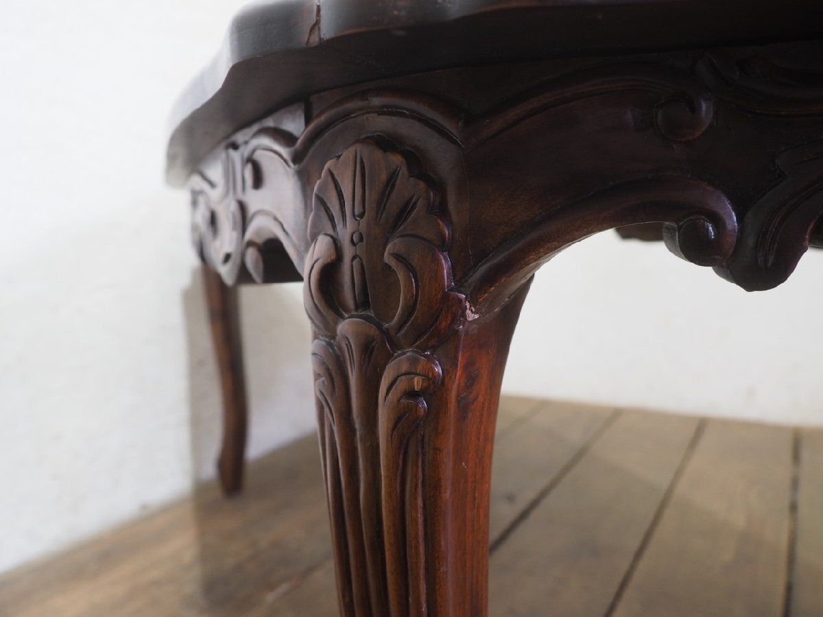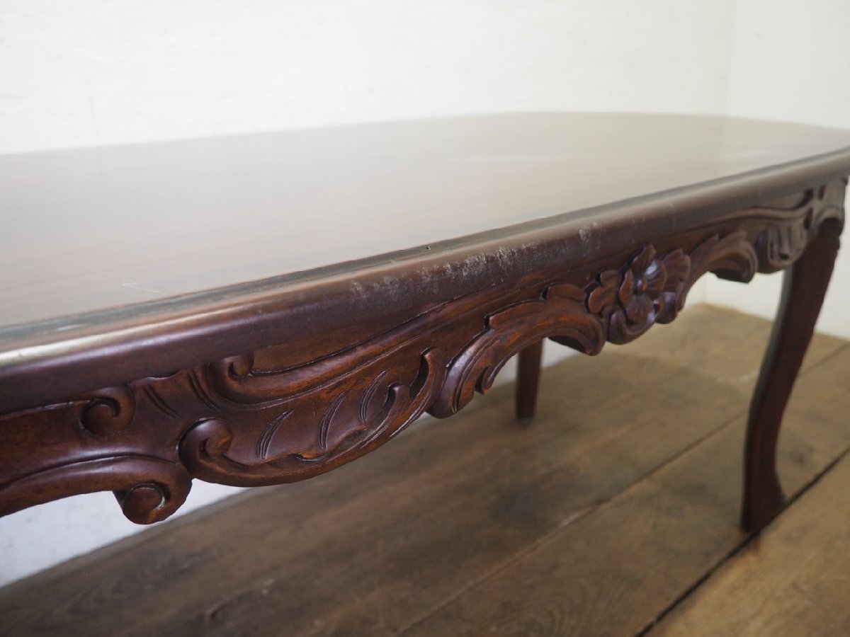 タ荷U0616◆天板W122,5cm×D58cm◆猫脚デザインの古い木製センターテーブル◆ロココ 無垢材 展示台 陳列台 アンティーク調 レトロO(ヤC)松