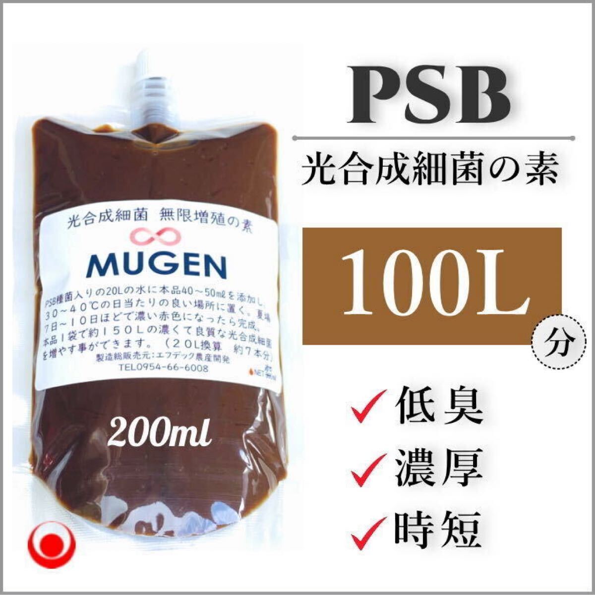 ※本品1袋200mlで約80~100Lの光合成細菌を培養する事ができます。夏場は光合成細菌の働きが活発なので、20L分培養する際にMUGEN(本品)50mlを添加します。冬場はそれより少なく40mlのMUGENを添加します。光合成細菌は高濃度の培基(栄養分)に触れると死滅する場合があります。ですので、濃い光合成細菌を作ろうと、MUGENの濃度を濃くしても逆効果となります。