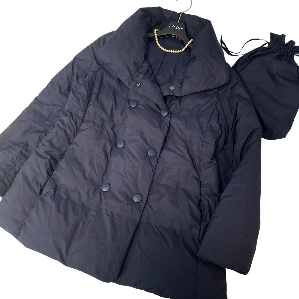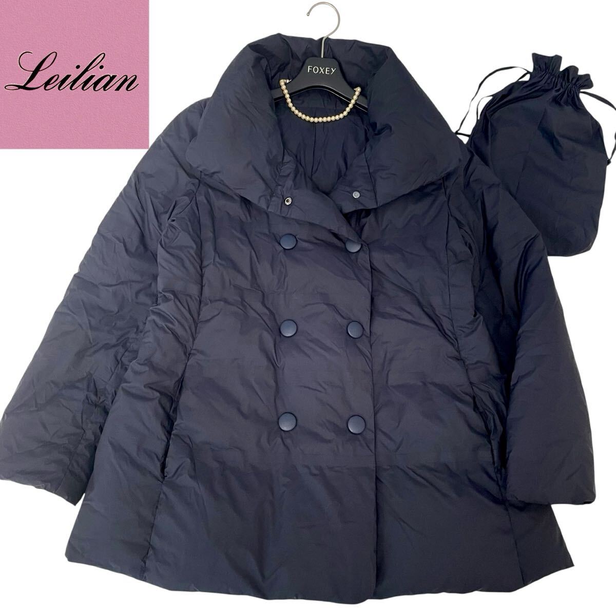 ◆超美品◆レリアン◆Leilian ダウン最高比率95%☆超軽量!シームレスダウンコート ジャケット 濃紺 収納ポーチ付 フォーマル 受験学校訪問