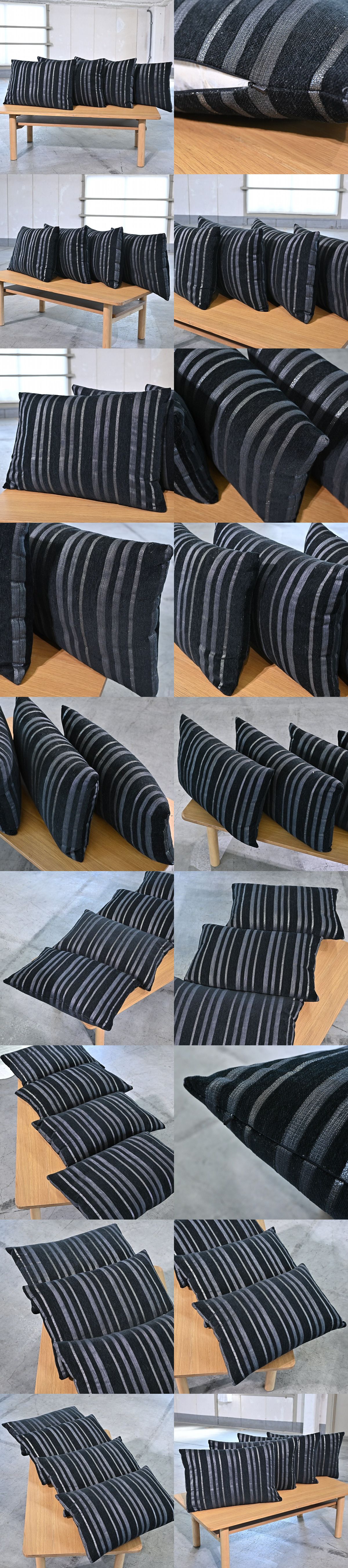 ホテルライク クッション 4個セット ストライプ柄 長方形 枕 座布団 背当て リビング 寝室 ダイニング ベッド リラックス