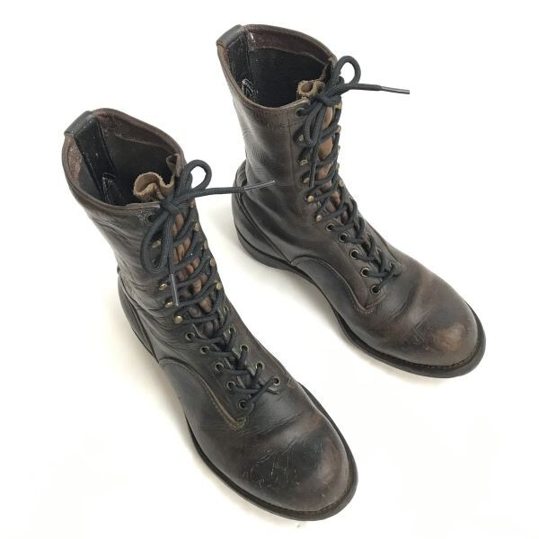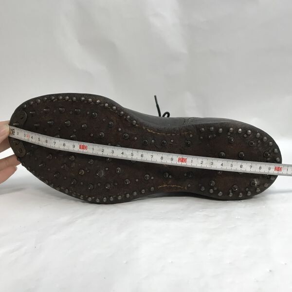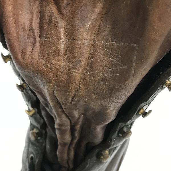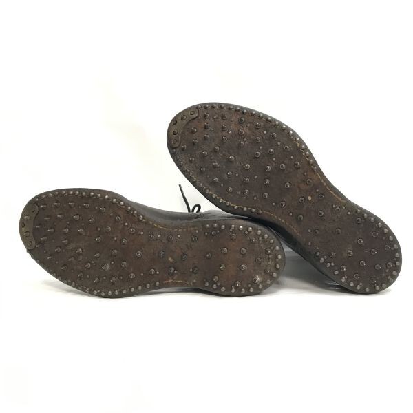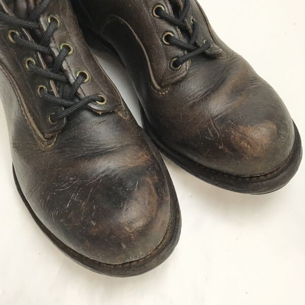 | 商品説明 | 60s-70s?/Vintage★WESCO/ウェスコ★鉄鋲/スパイクソール/ロガーブーツ【8.5C/25.5-26.0-26.5茶】iron studs/JOBMASTER/Leather/Boots/shoes◆bWB110-8 (ORIGINAL TITLE) ※商品情報について※ 上部に表示されております【アイテム】・【表記サイズ】などの各項目は、商品カテゴリ振り分けの際に自動で表示される大まかな情報となっており、商品タグなどに記載されている正式な情報と一部異なっている場合がございます。 大変恐縮ではございますが、ご購入の際は下記の詳細情報や商品画像のご確認をお願い致します。 ーーーー ◆SIZE: 8・1/2C 25.5-26.0-26.5程度 ※採寸は画像をご確認お願い致します。 鉄鋲のスタッズ(鉄スパイク)が施されたソールとなっており、現在では大変希少なブーツとなります。 印字から正確な年代は読み取れませんでしたが、タグや作りの特徴から80年代以前のものではないかと推察されます。画像をご確認お願い致します。 ◆商品の状態◆ ■RANK:B 状態ランク表 S新品 SA使用感がほぼ見られない美品、または未梱包の新古品 A使用感が少なく、比較的状態の良い中古品 AB使用感はあるが、気になる汚れ・傷みのない一般的な中古品 B使用感や汚れ、使用に支障のない傷みのある中古品 C目立つ汚れや傷みのある中古品 D/E補修が必要なジャンク品 状態詳細 かなり古い品の為、経年劣化、サビ、小傷、革シワはございますが、着用に難のあるダメージ等は特に見あたりません。 ※お手数をおかけしますが、着用前にクリームなどで革のメンテナンス・お手入れをお願い致します。 また、ヒールの磨り減りは比較的少なく、まだまだ履いていただけます。 (コンディションに関しましては当方の主観による判断になります。御不明な点がございましたら必ずご質問願います。慎重にチェックは行っていますが、汚れ/傷のわずかな見落とし等は中古品という事でご了承下さい。) <BUZZBERG> |