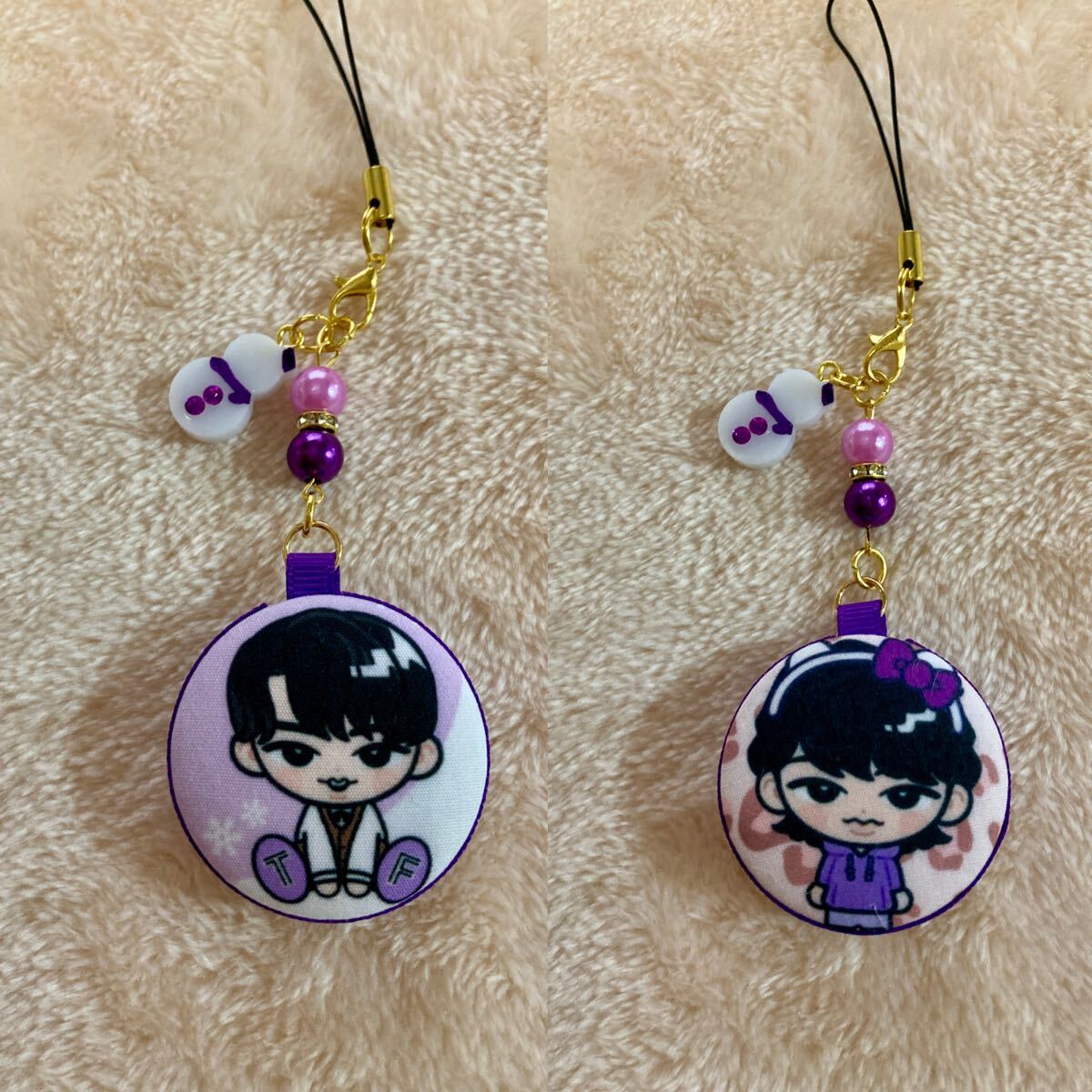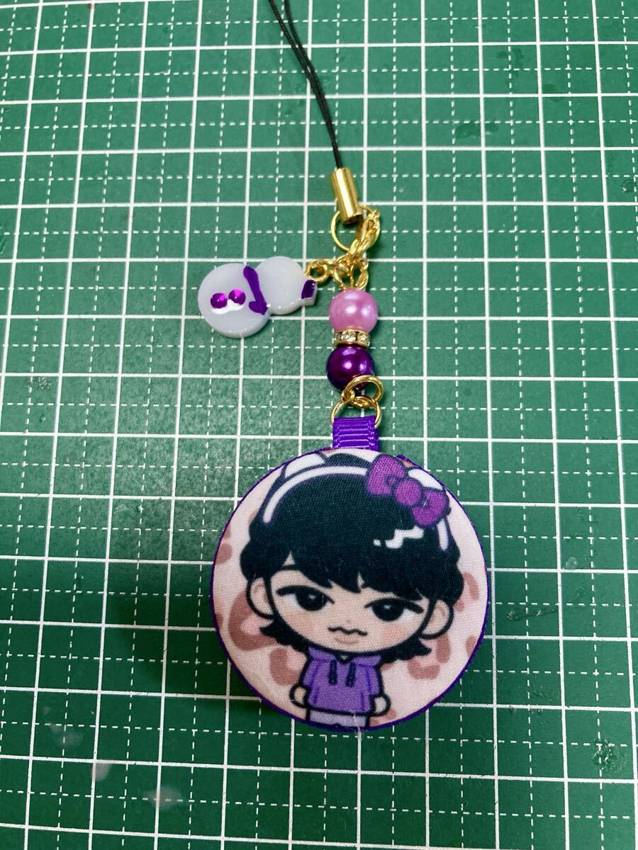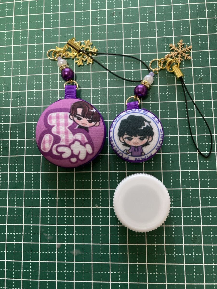 38mmのくるみボタンで作ったリバーシブルストラップです(^^)