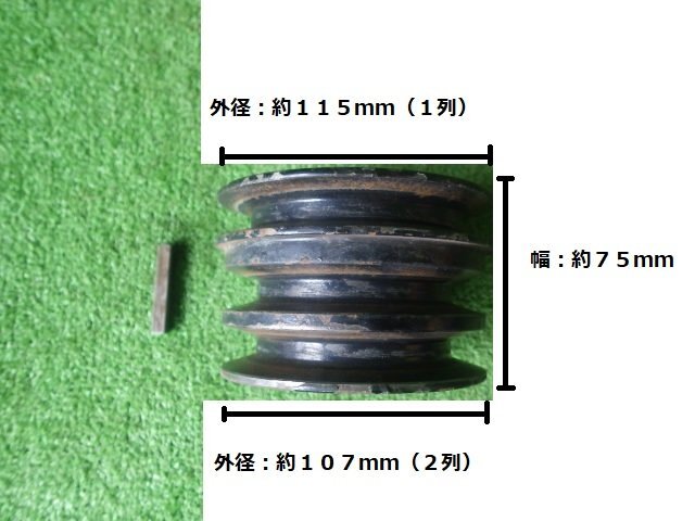 | Bベルト Vプーリー 3本掛け 径:約115mm(1列) 約107mm(2列) 軸径:約25mm 幅:約75mm キー溝:約7mm キー幅:約7mm 取外し前は問題無く使用していた商品です 適合機種に関しての質問には回答できません 他にも農機具の中古パーツの在庫がありますので問合せ下さい 中古パーツに関しての問い合わせは当ストアまで連絡願います 質問欄からの問合せには回答できない場合がありますので メールにてお問い合わせ下さい リサイクル あおや村 aoyamura@cy.tnc.ne.jp 営業時間(月曜日~土曜日 9:00~19:00) 当ストアでは、農機具・建設機械・スクーター・電動工具・電化製品・厨房機器等の販売・買取を随時行っております お持ち頂ければ無料にて見積り・買取・下取りをさせて頂きます 出張買取も応相談致します 無断で当商品をコピーして販売しているサイトがありますが当ストアはヤフー以外のサイトでの販売はしておりません!激安店・送料無料等となっている物は要注意です! | |