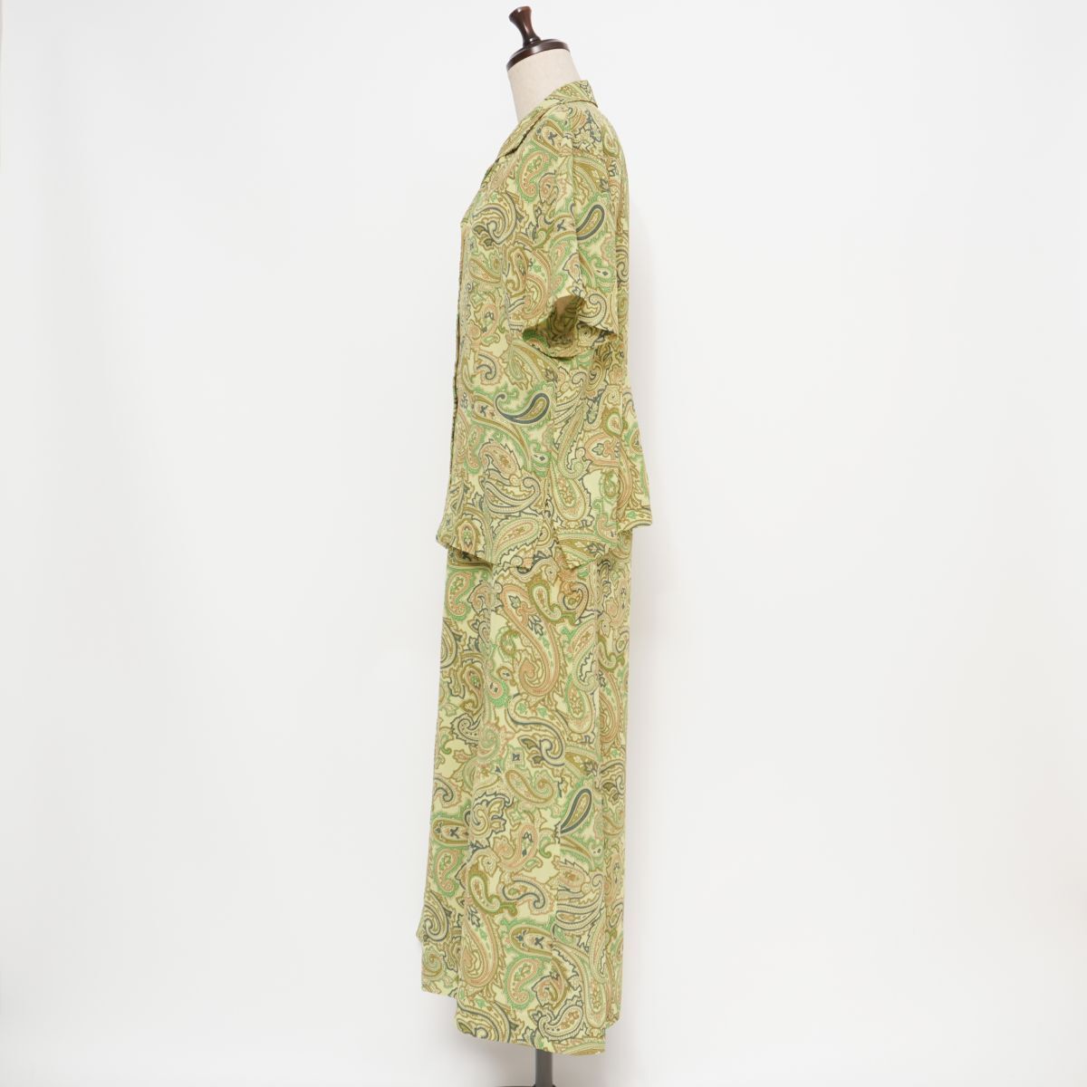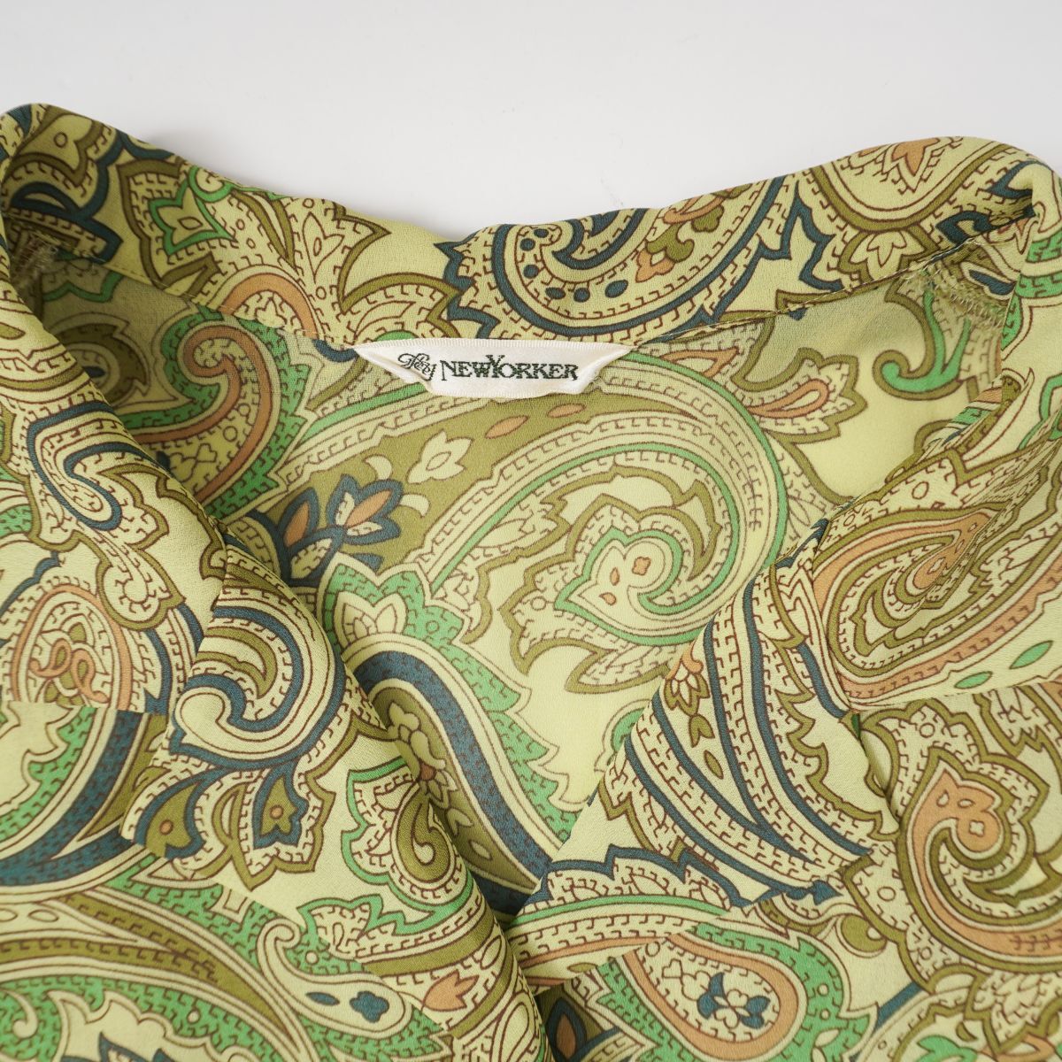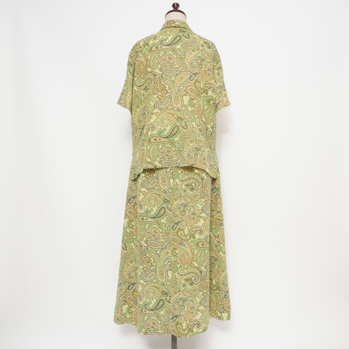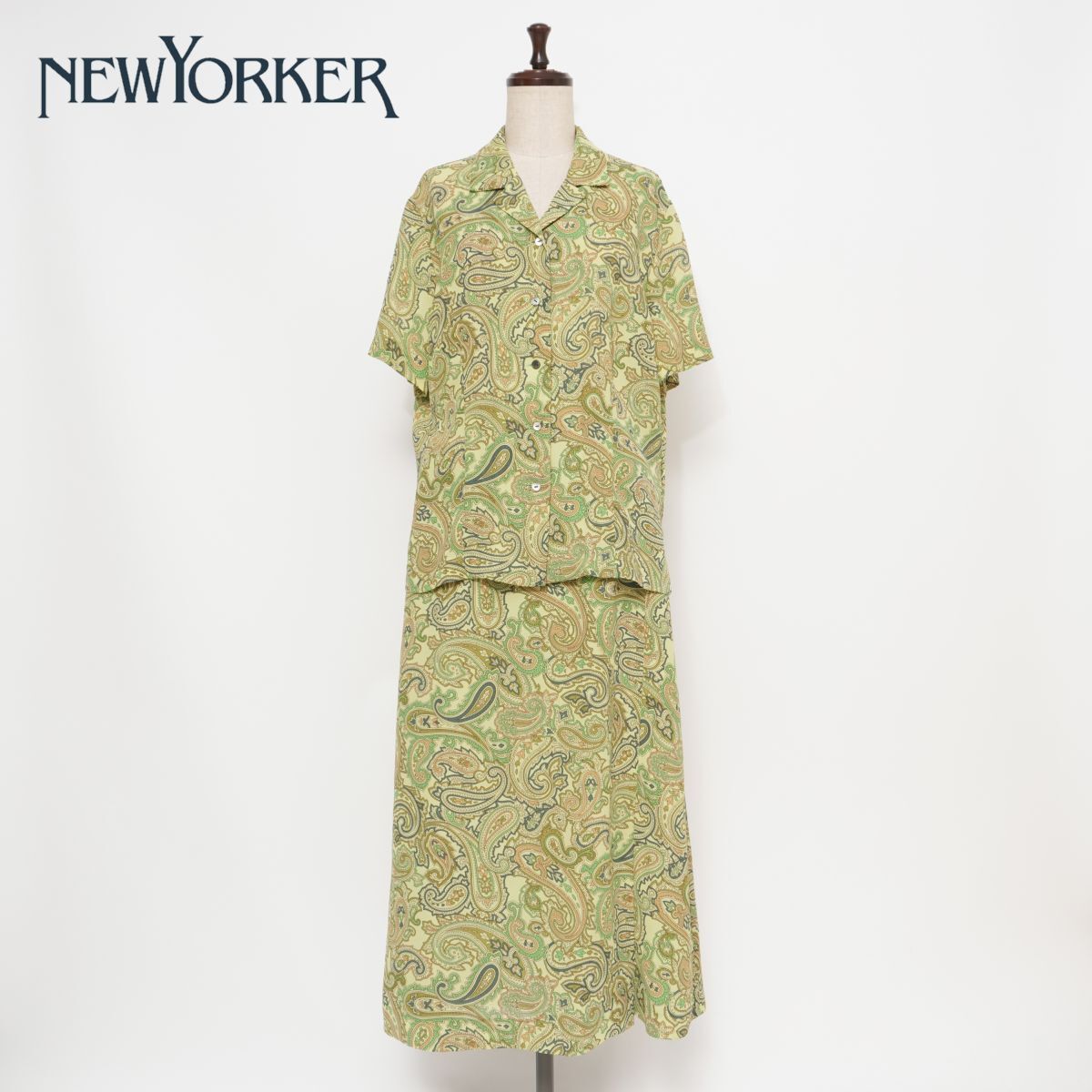 美品 NEW YORKER ニューヨーカー ペイズリー柄プリントセットアップ 半袖スキッパーシャツ タイトスカート 緑 グリーン サイズM相当*GD15