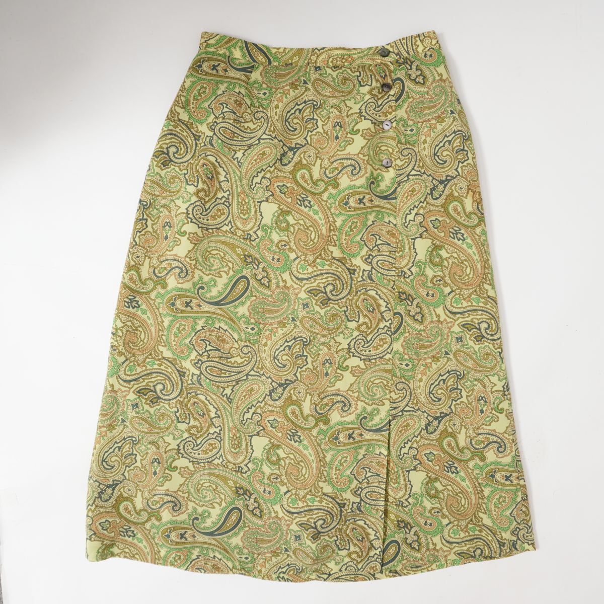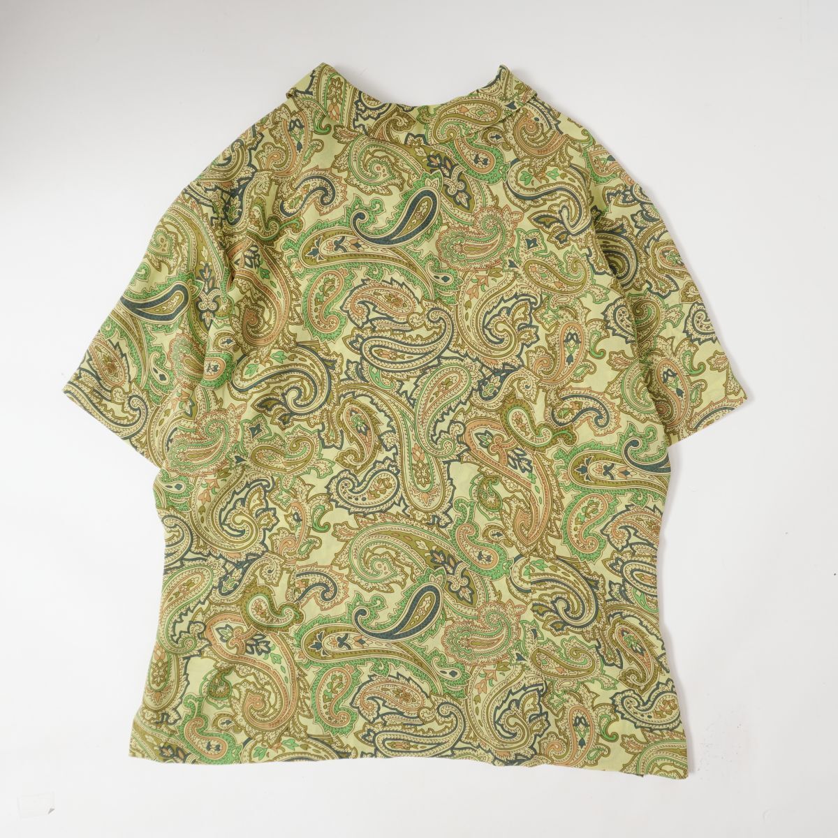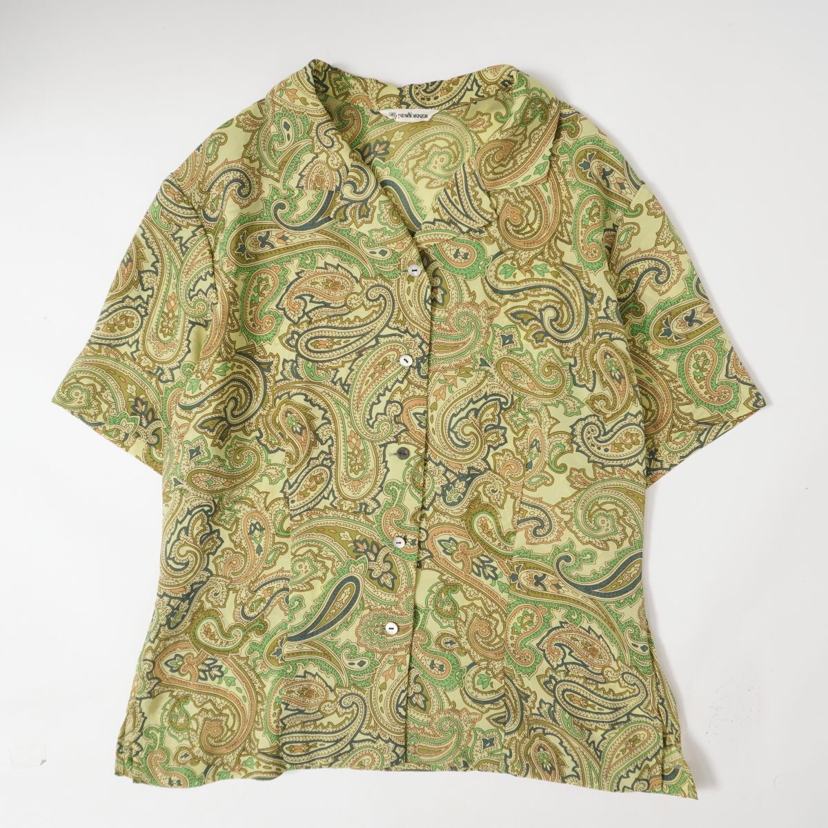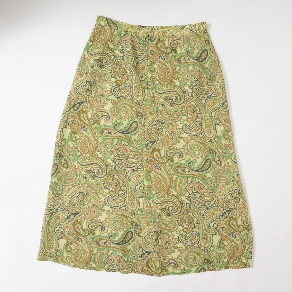 美品 NEW YORKER ニューヨーカー ペイズリー柄プリントセットアップ 半袖スキッパーシャツ タイトスカート 緑 グリーン サイズM相当*GD15