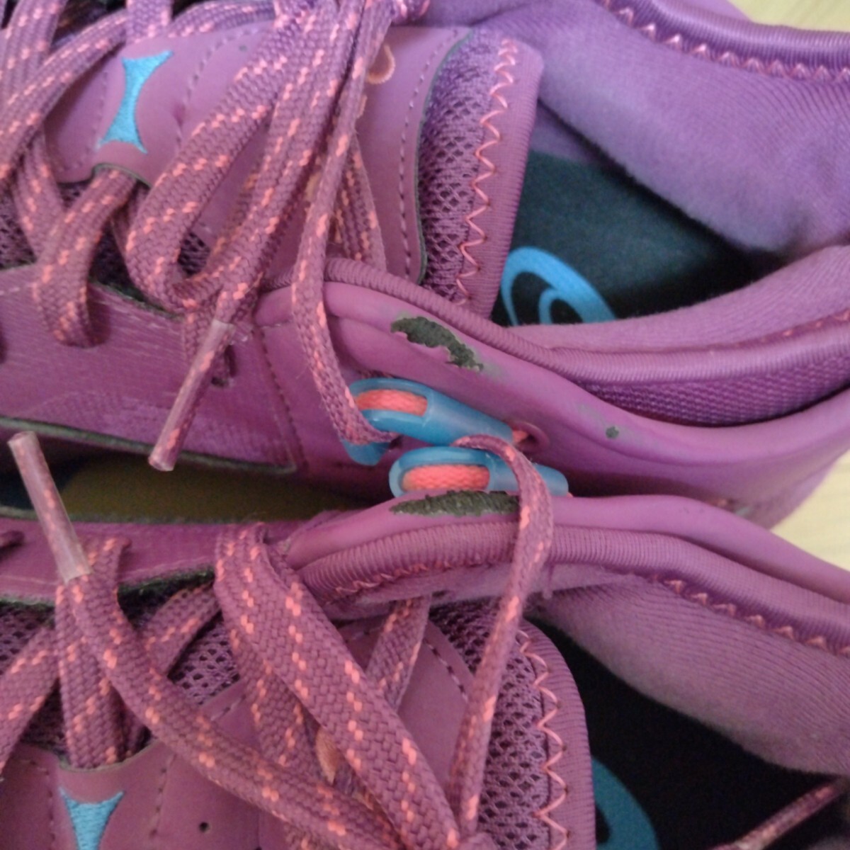 つま先の前の少しの欠け、履き口の内側の剥げがあります。