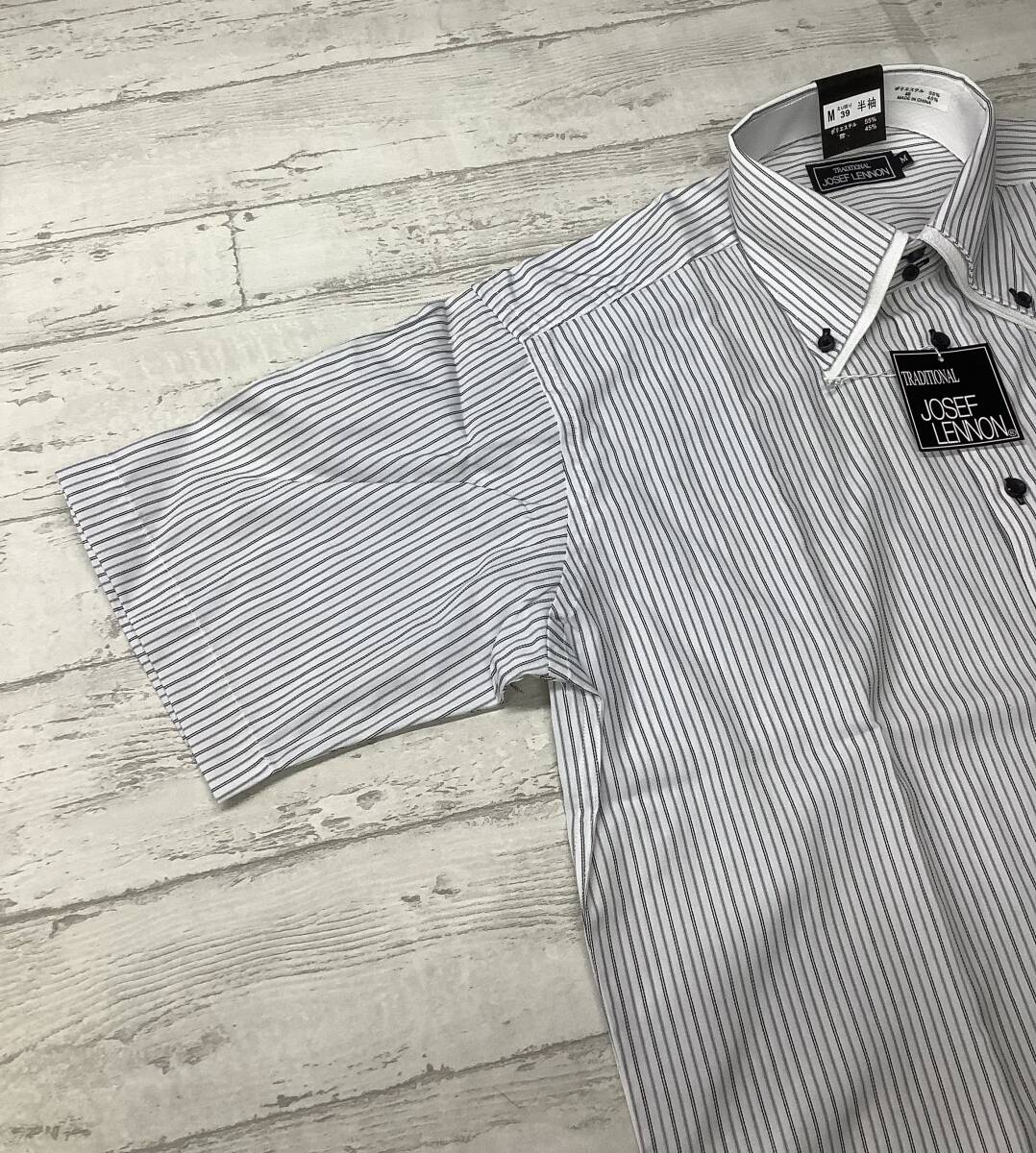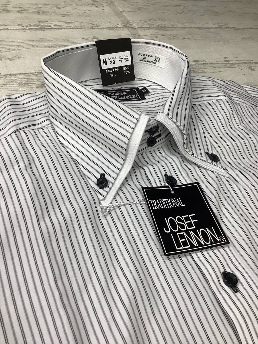 新品未使用 39Mサイズ半袖 ★ボタンダウン カッターシャツ ストレッチ素材 ★ストライプ 黒白