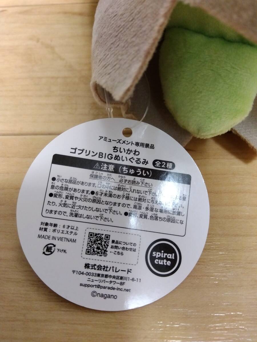 ちいかわ ゴブリンBIGぬいぐるみ 本 焼く 煮るです。