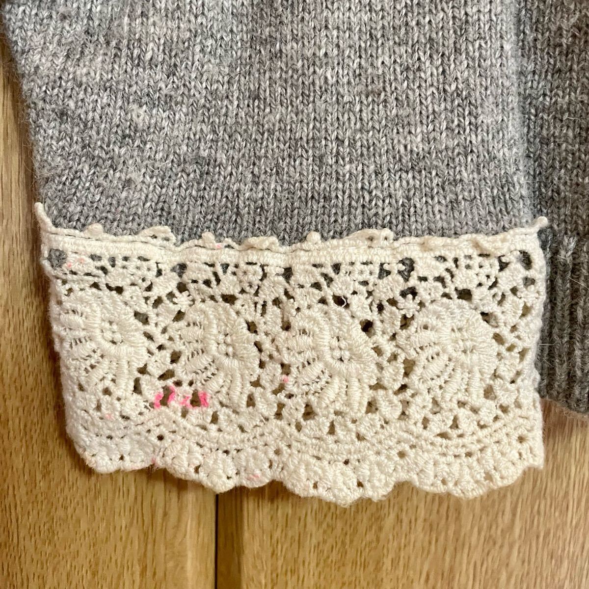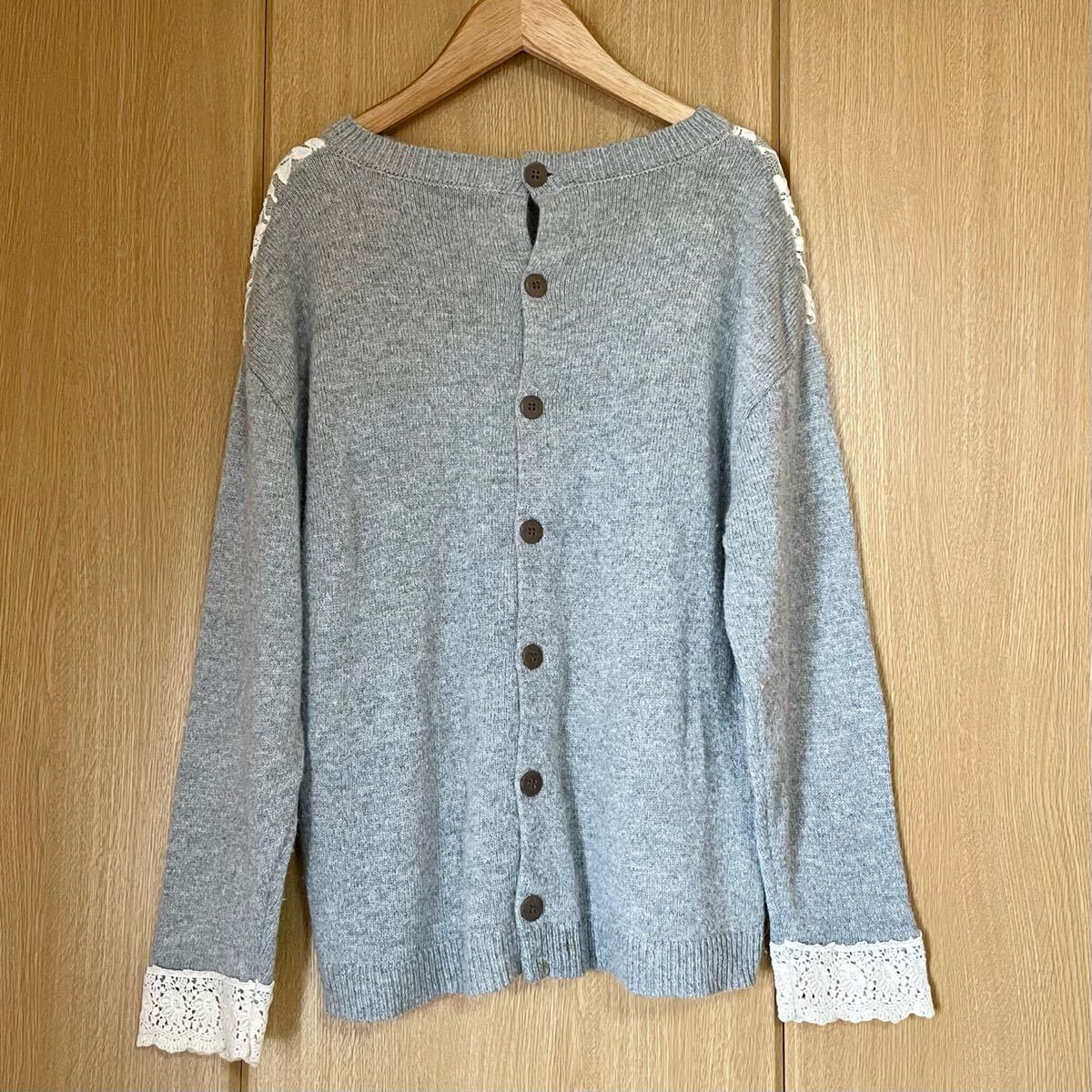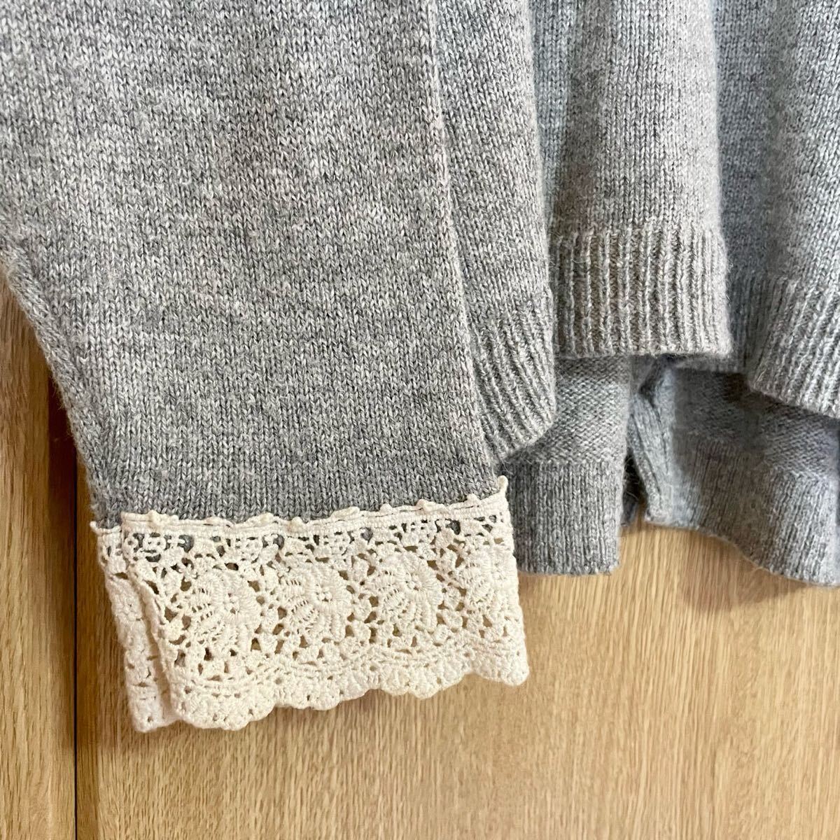 前後着 2way レース貼りデザイン コットンレース カーディガン ニット セーター グレー