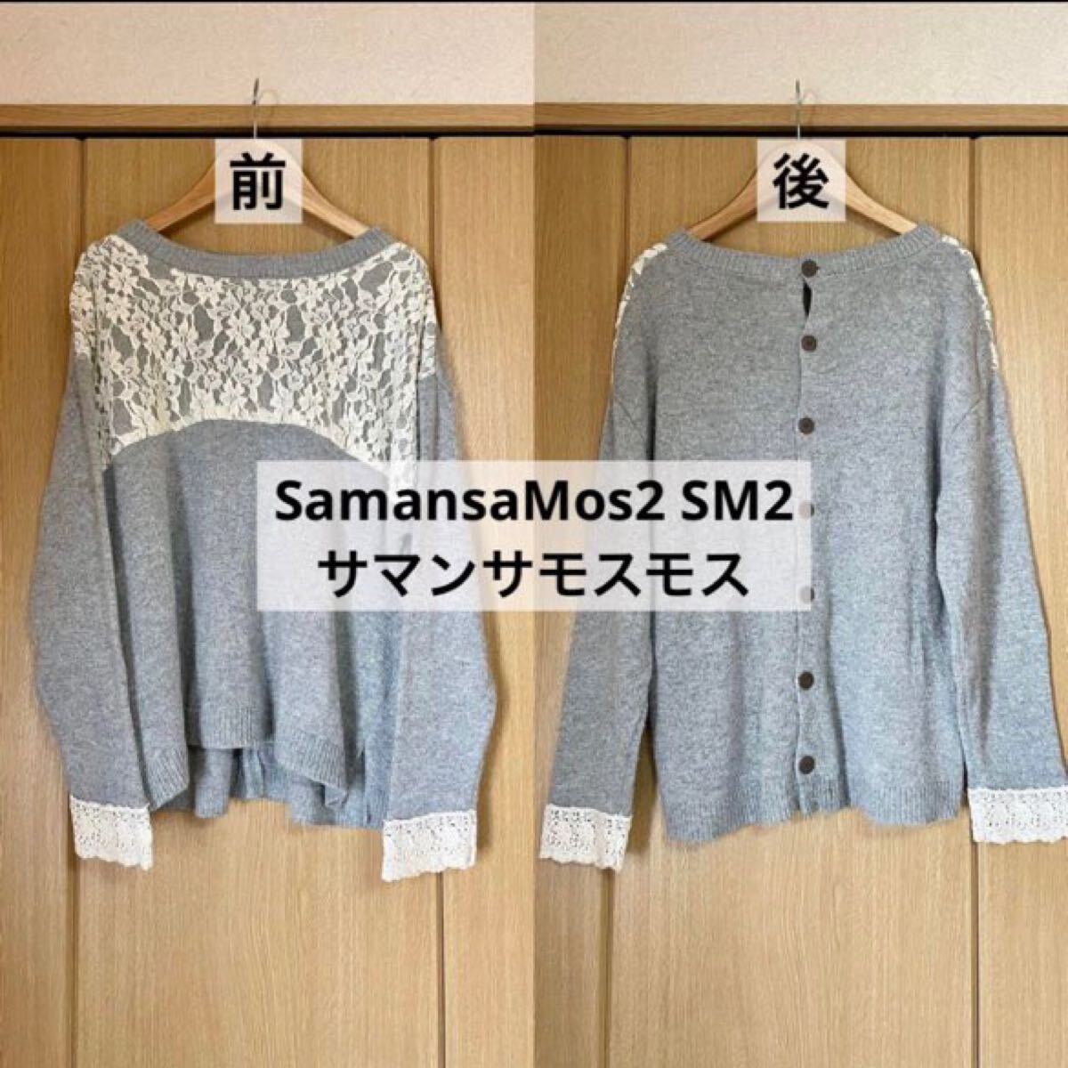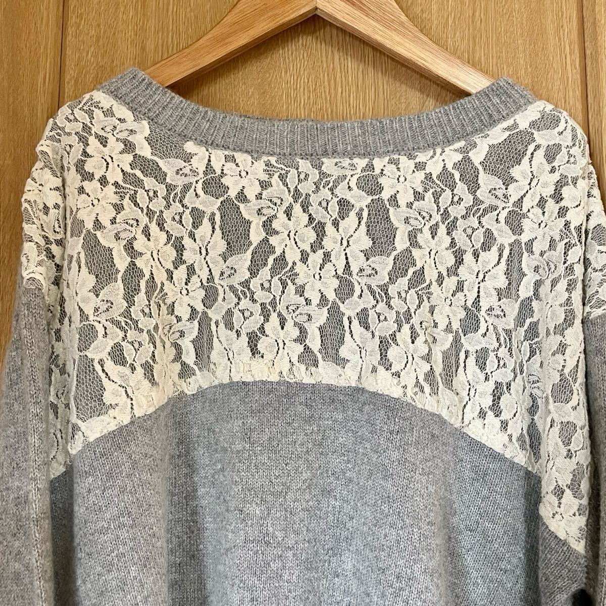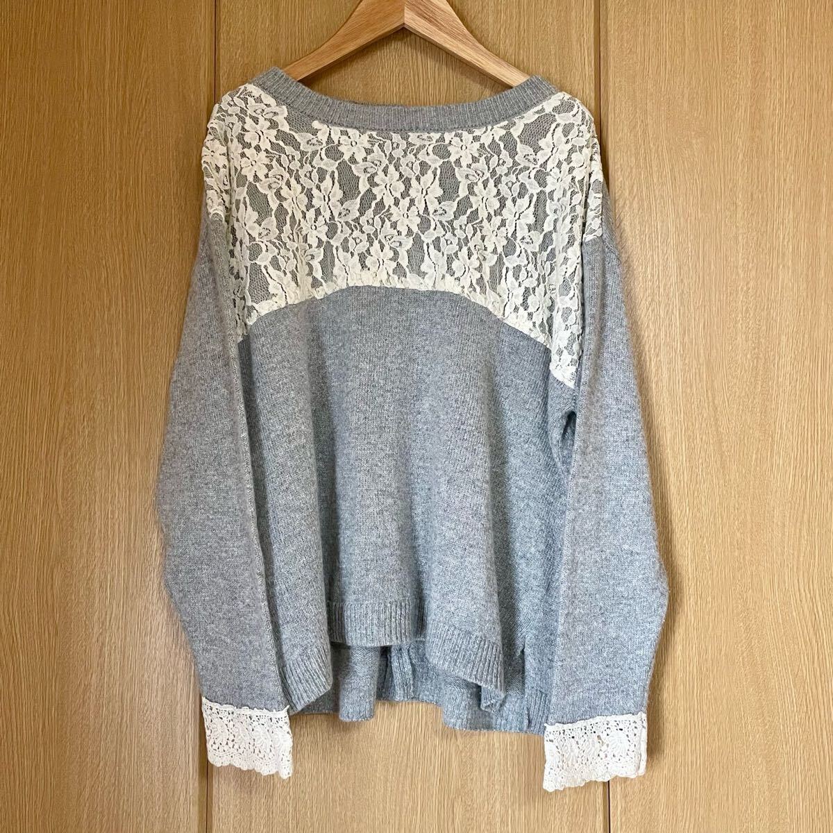 前後着 2way レース貼りデザイン コットンレース カーディガン ニット セーター グレー