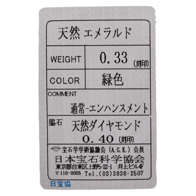 Pt900 プラチナ エメラルド0.33ct ダイヤ0.40ct リング 指輪 レディース 15.5号 中古