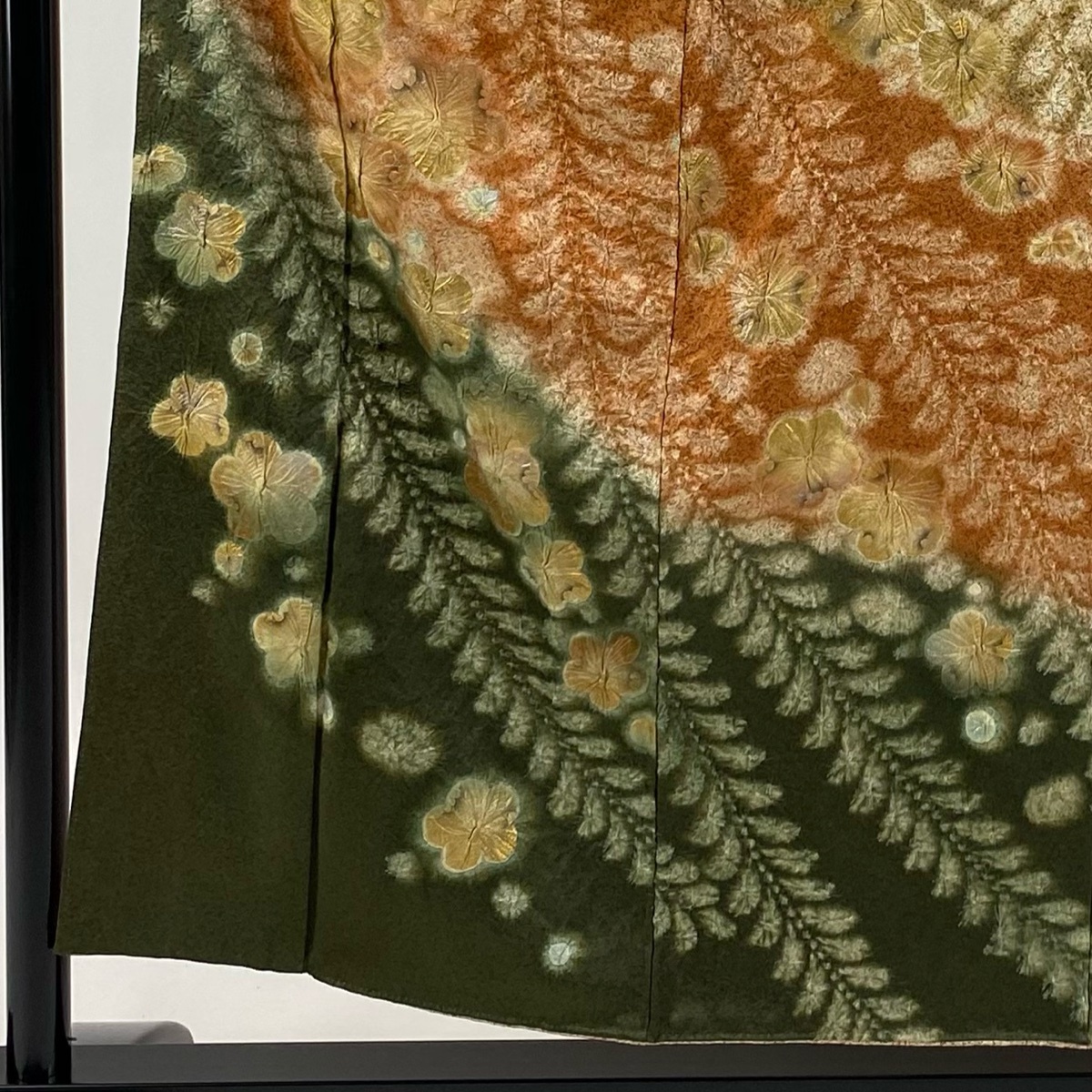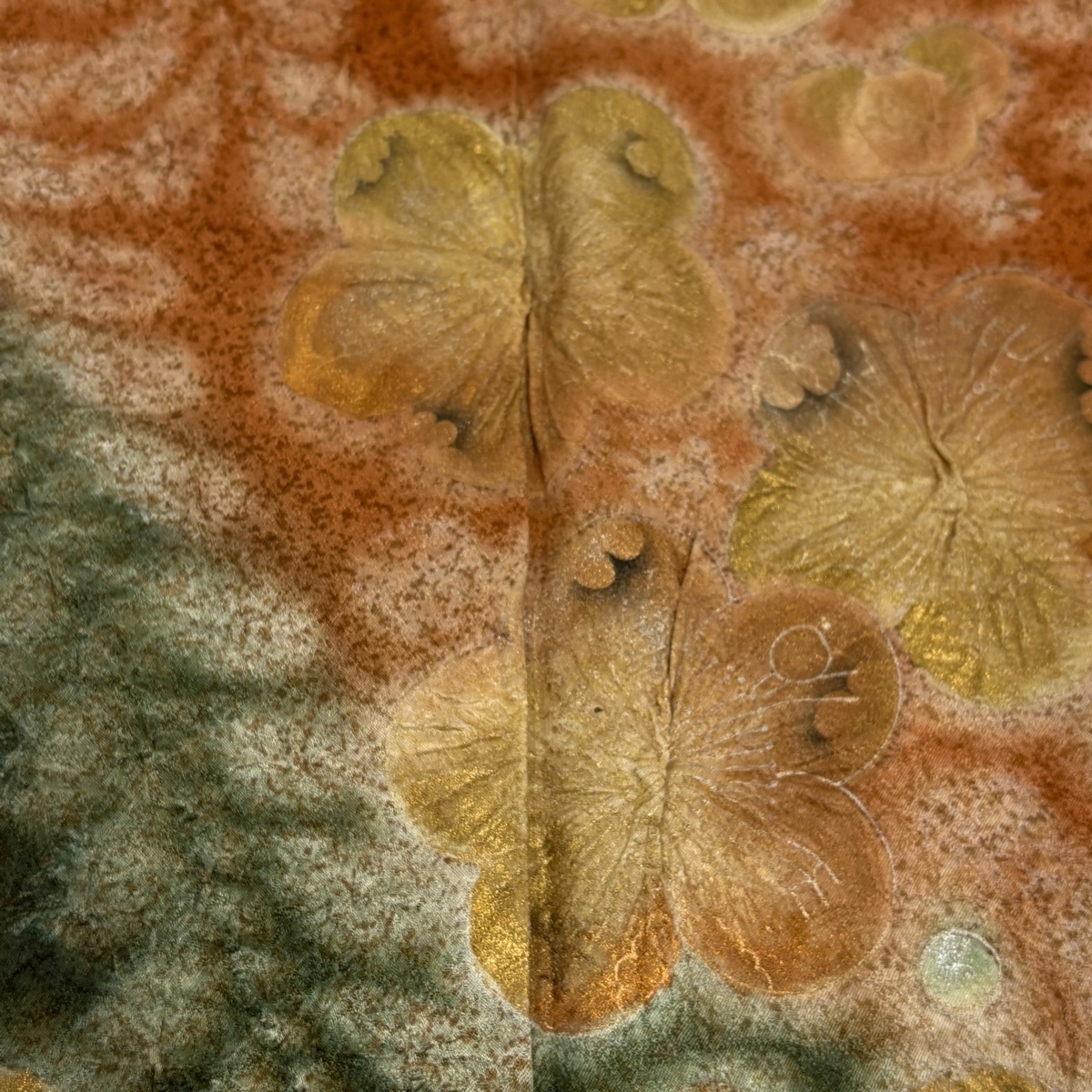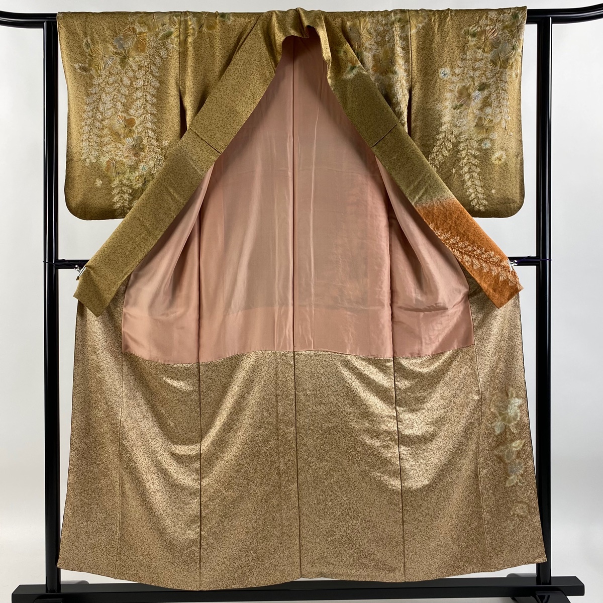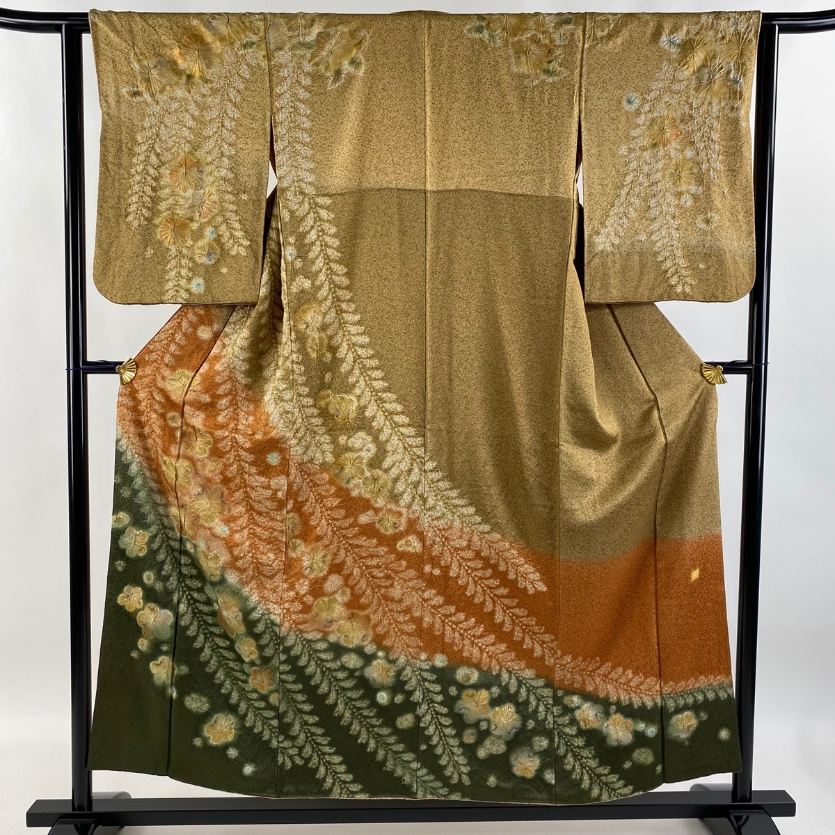 | 訪問着 美品 名品 落款 辻が花 金銀彩 染め分け 黄土色 袷 身丈153.5 裄丈62 S 正絹 【中古】 |