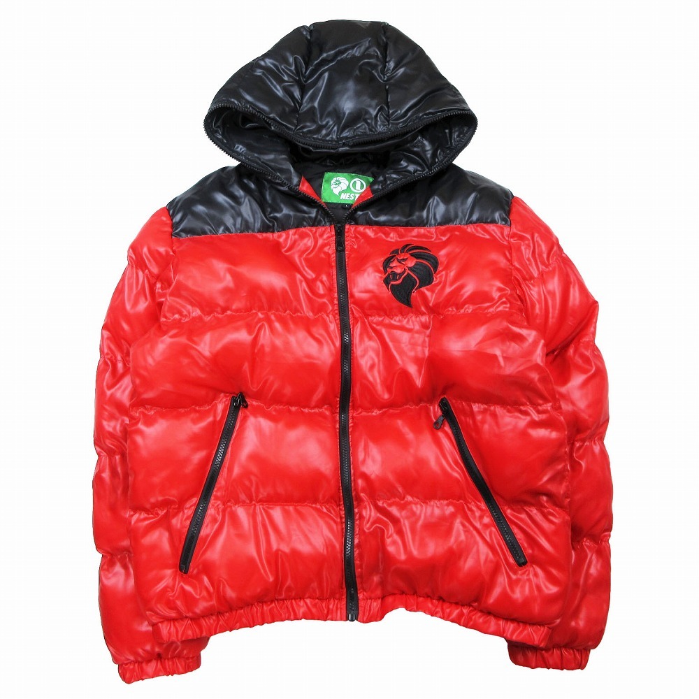 | 【NESTA ネスタ バイカラー 中綿入り ジャケット ブルゾン フーデット フルジップ ロゴ 刺繍 アウター L 赤 レッド メンズ】 | |