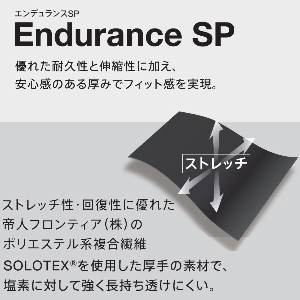 日々プールでトレーニングを重ねるスイマーをサポートする練習用スイムウエアコレクション「TurnS」。毎日のトレーニングを支える高い耐塩素性、ストレッチ性に加え、透けにくい厚みと柔らかな風合いを実現した素材「ENDURANCE SP(エンデュランス・エスピー)」を使用したレディーススーツです。脚さばきを邪魔しないレッグカット、V字ストラップと水抜けの良い大きな背穴がより軽やかな泳ぎをサポート。