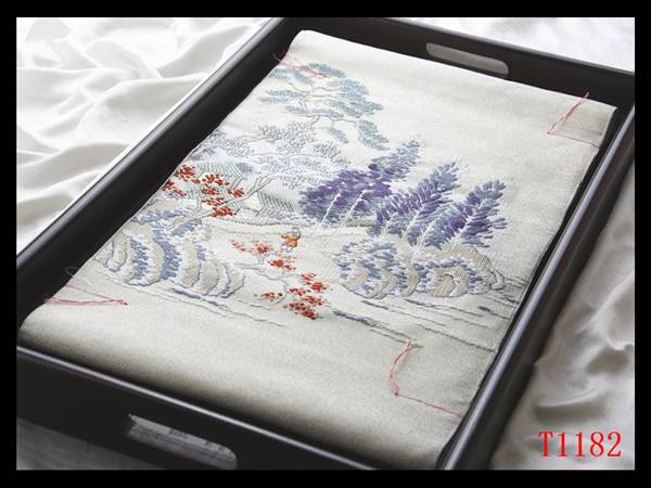 蔵【T1182】厳選逸品 爪掻き本綴れ シルバー色地 気品豊かに 正絹高級美術名古屋帯 未使用 ◇検簪着物袋帯和装小物帯締め