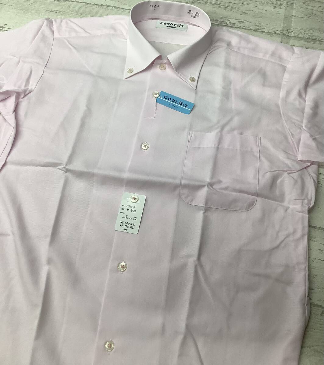 訳あり 新品未使用 定価5,500円+税 39Mサイズ半袖 ★ボタンダウン カッターシャツ ストレッチ素材 ピンク