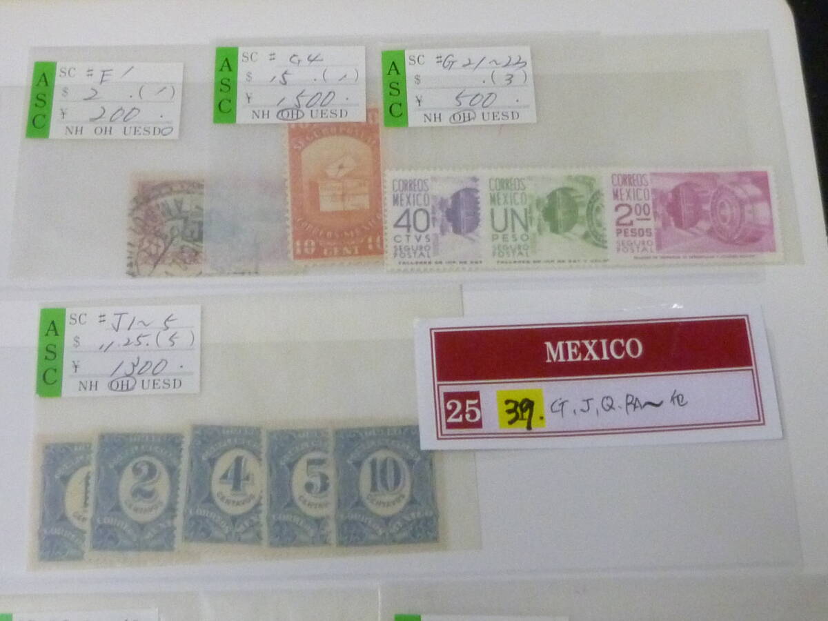25 M №39 メキシコ切手 1919-1975年 SC#E・G・J・Q・他 印紙7種含 計24枚+田型 未使用OH(使用済1種含)・VF 【小売価格 11,250円】