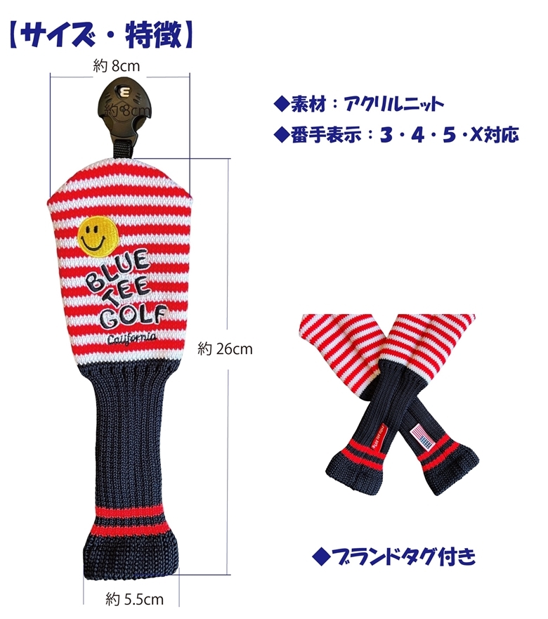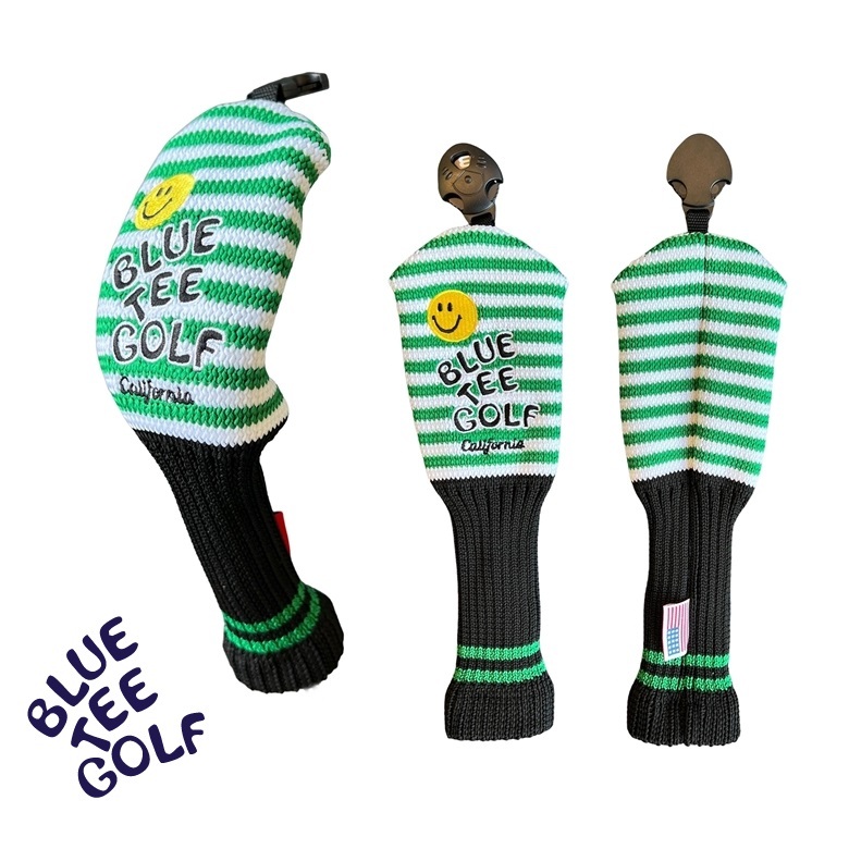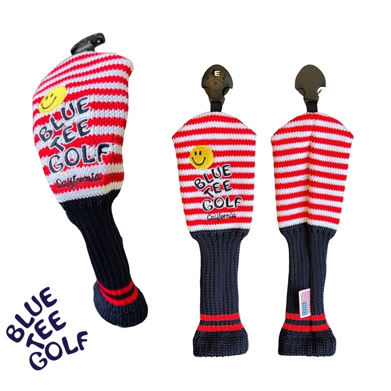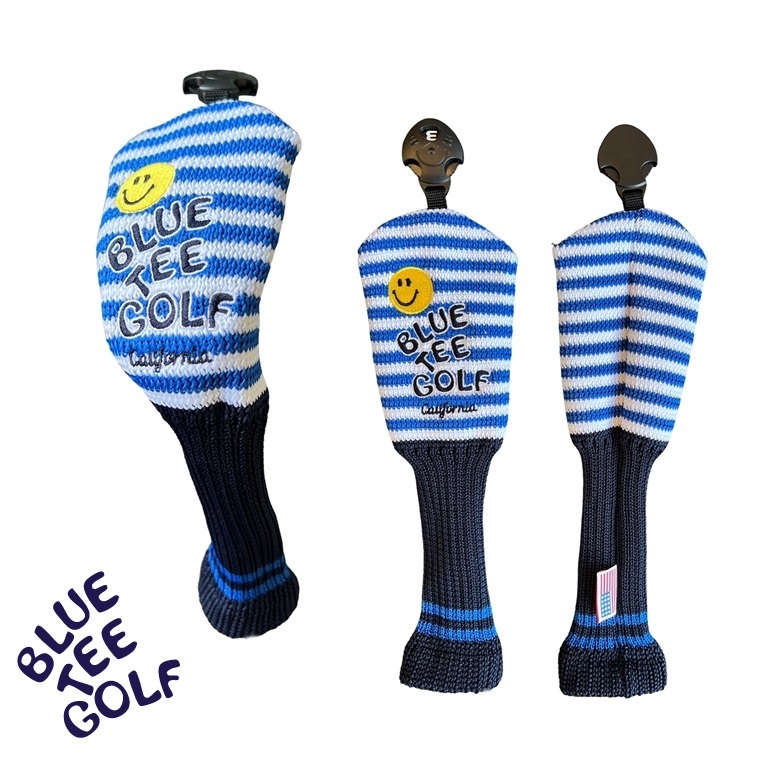 ■3-7送料無料【3本セット:RD/BL/GR】ブルーティーゴルフ【Newカリフォルニアストライプ】ユーティリティ用ヘッドカバー CAUT1 BLUE TEE