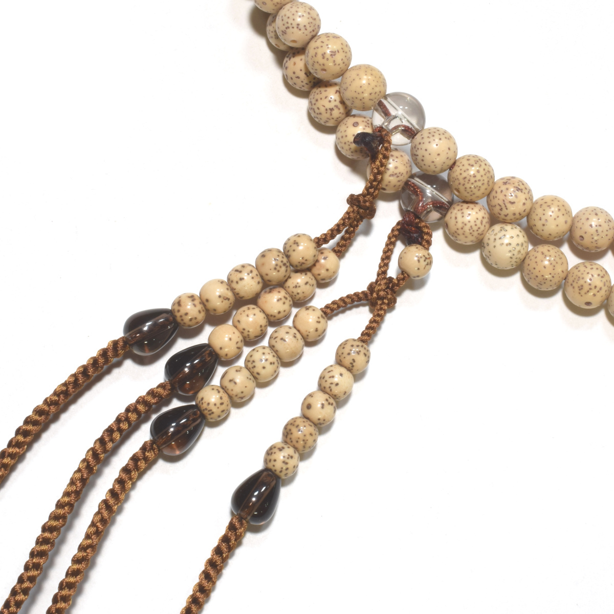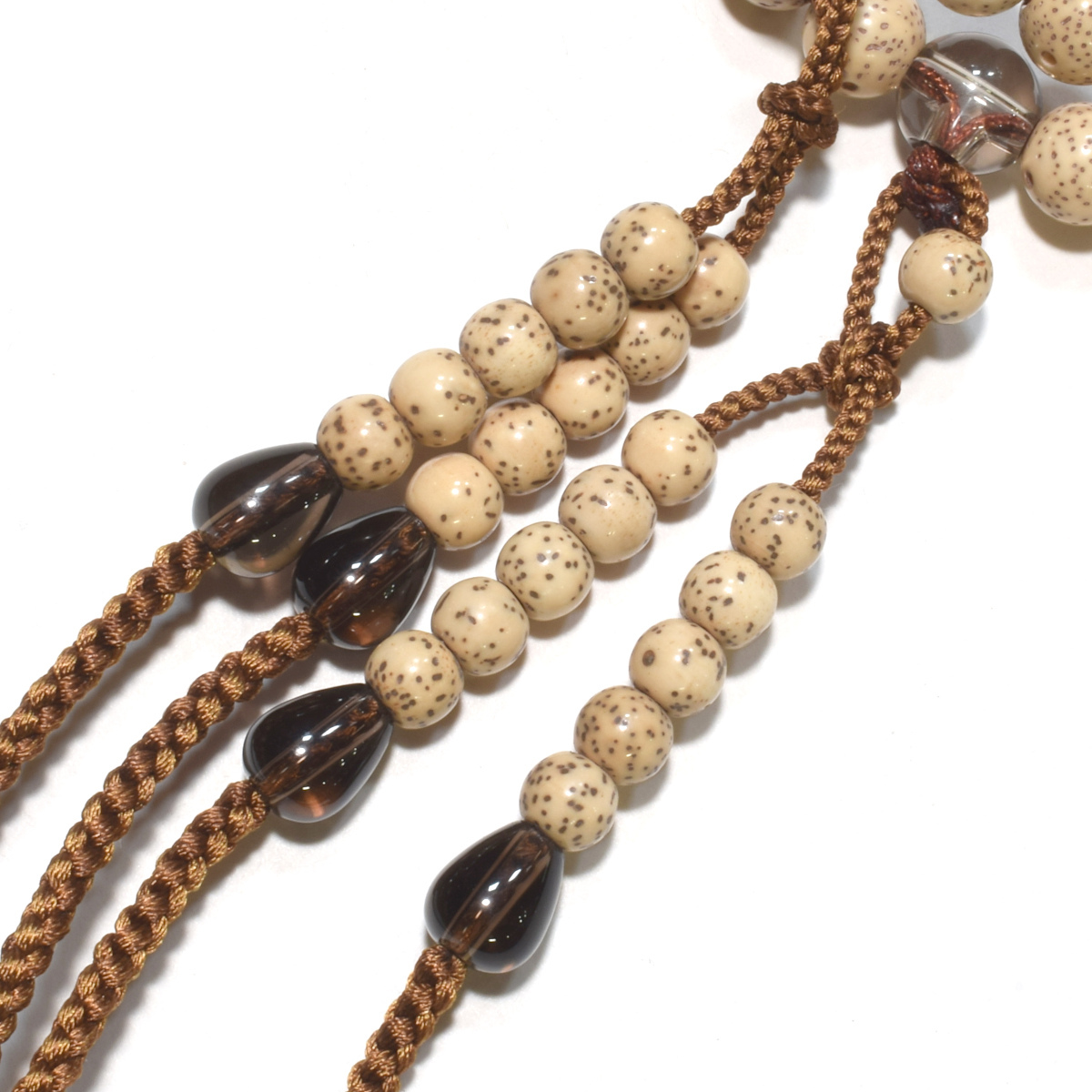 | 商品説明 | 主玉 (星月菩提樹) 約 9mm 天玉 (茶水晶) 約 8mm 親玉 (茶水晶) 約 10mm 親玉 (水晶) 約 10mm 輪の引き伸ばし長さ 約 48cm |