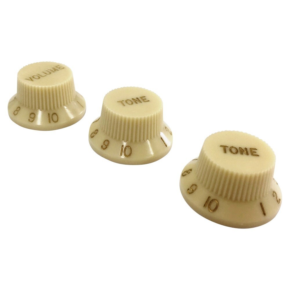 YJB PARTS ストラトノブセット(1V2T) Vintage Yellow インチミリ兼用 (メール便のみ送料無料)