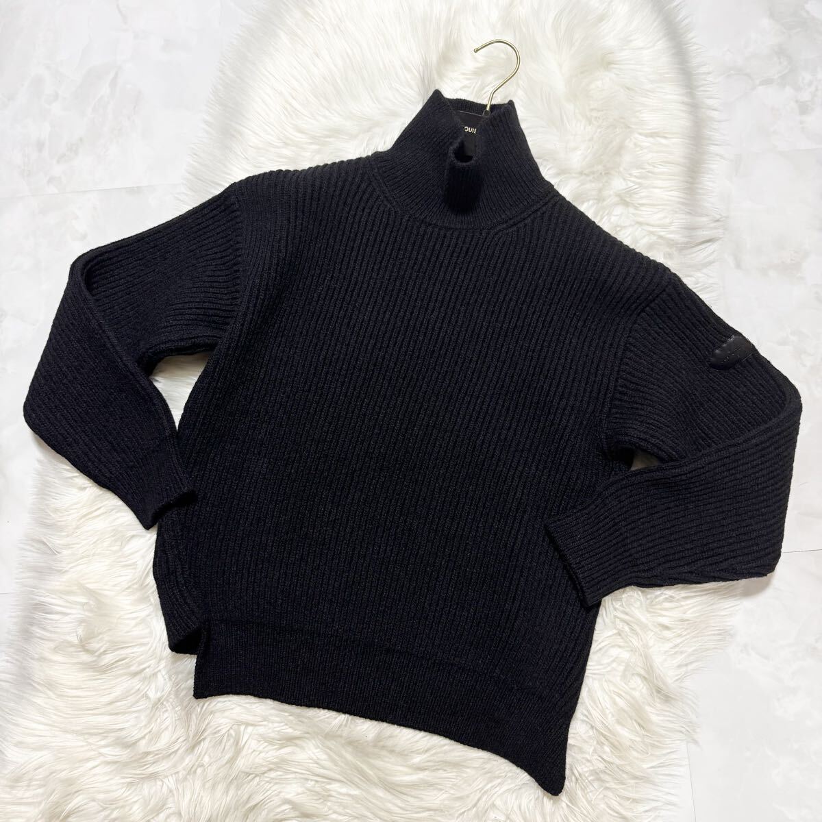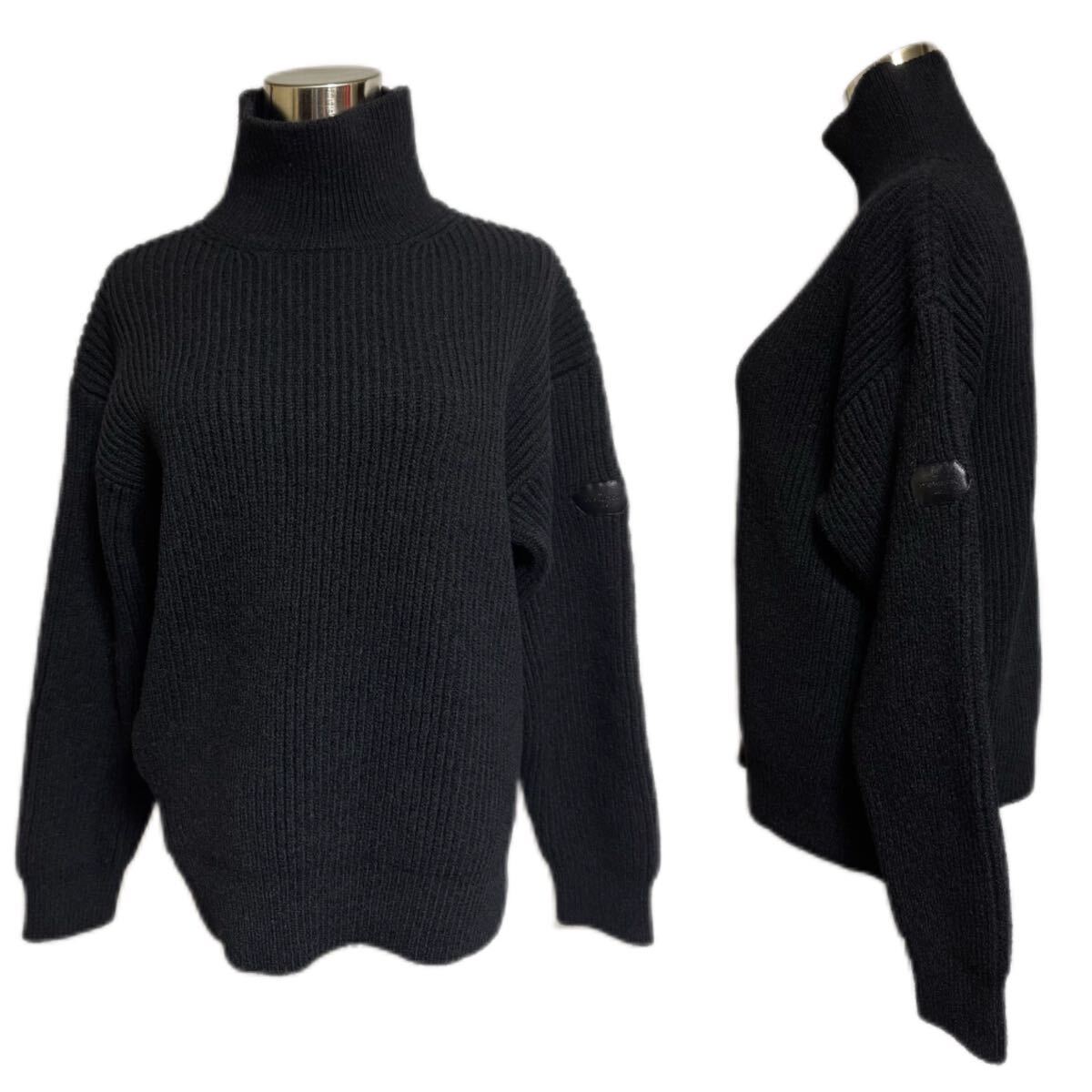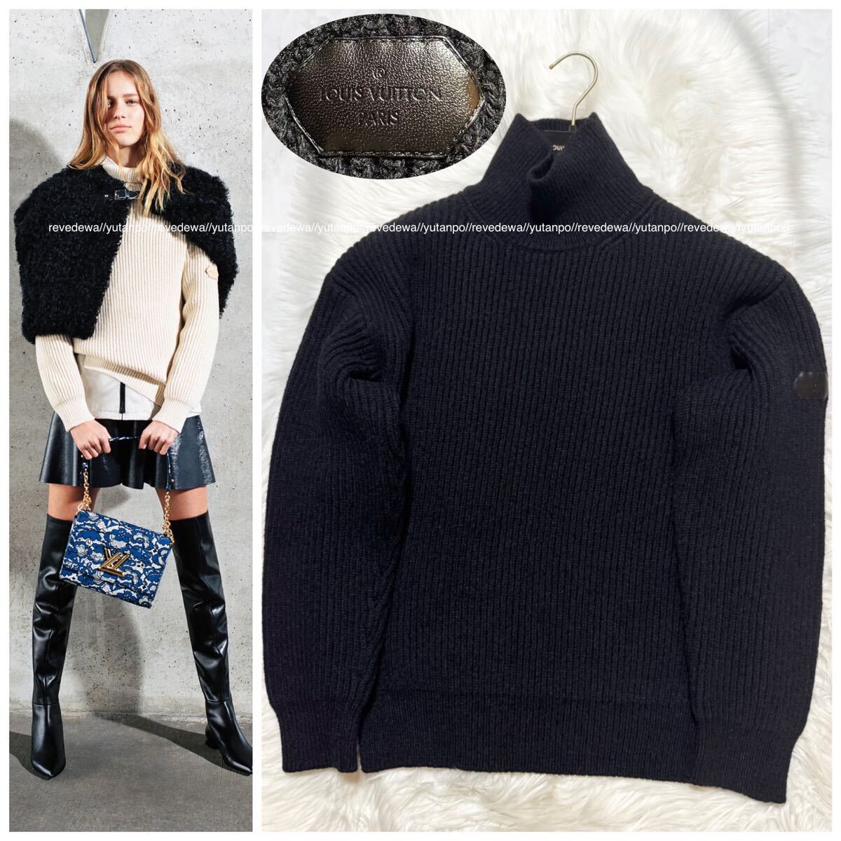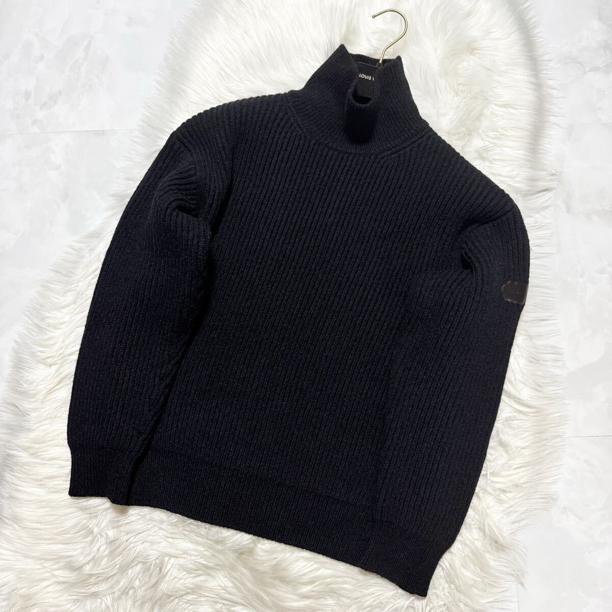 | 本物 美品 コレクションモデル ルイヴィトン 袖ロゴシグネチャー レザーパッチ アシンメトリー セーター L 黒 Louis Vuitton | |||||
