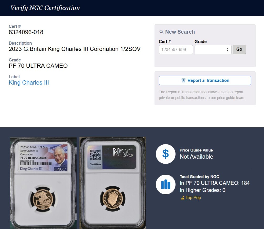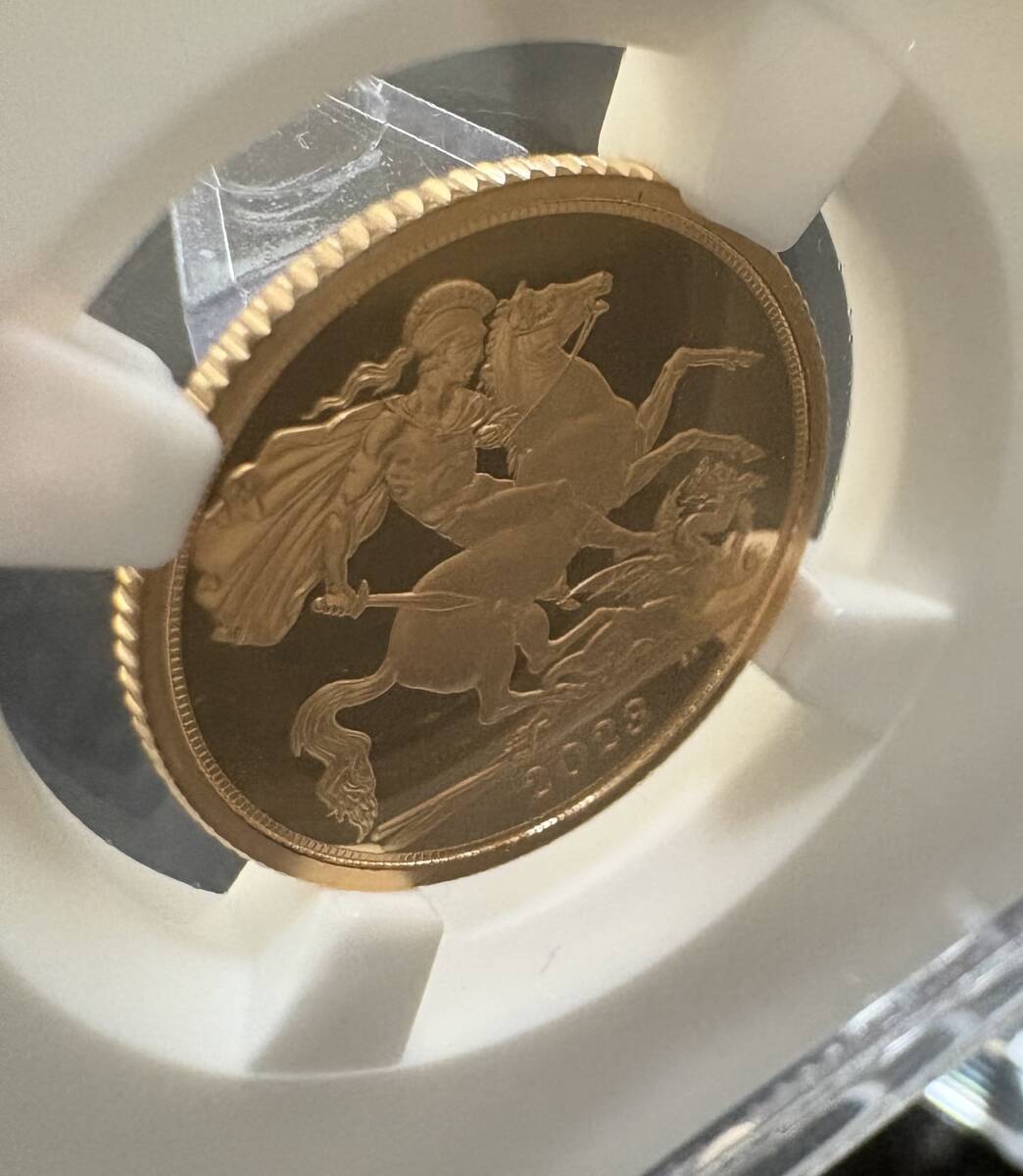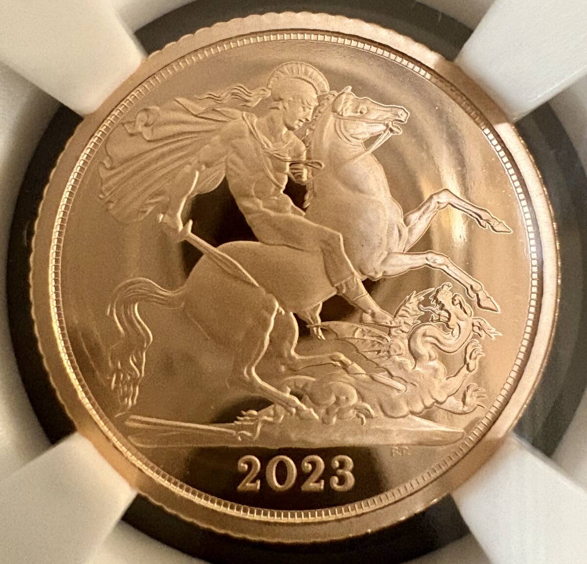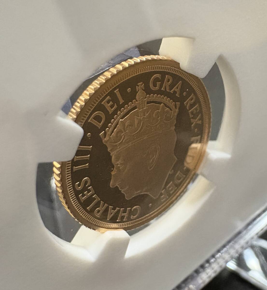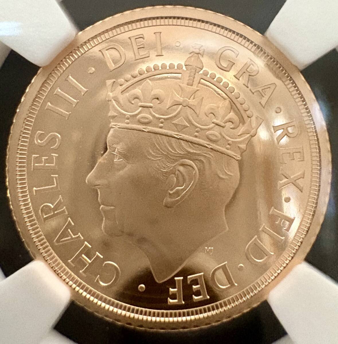 英国ソブリン伝統200年の歴史と2023年という現代史的節目が重なる特別発行の戴冠記念金貨。その中でも最高鑑定PF70UCの個体は、将来にわたり価値を維持しうるコインです。