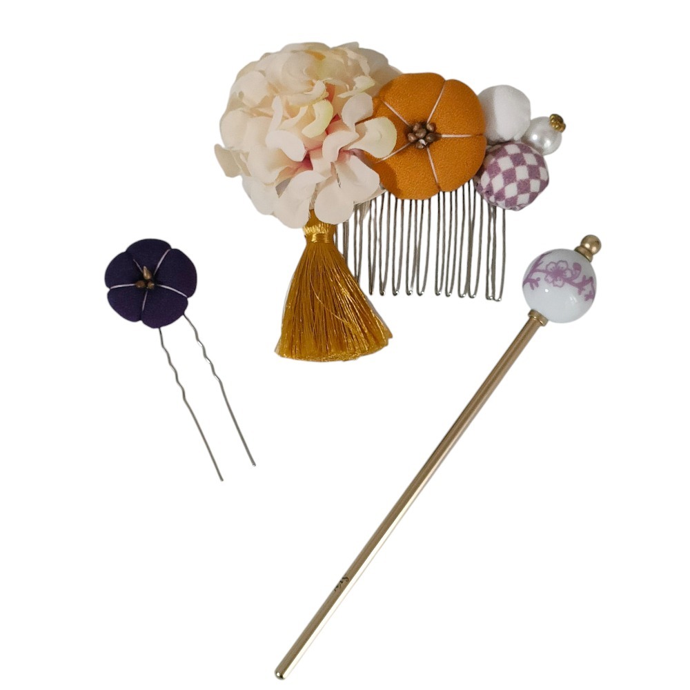商品名:Wargo ワーゴ 和柄 コーム Uピン かんざし ヘアアクセサリー 3点セット マルチカラー