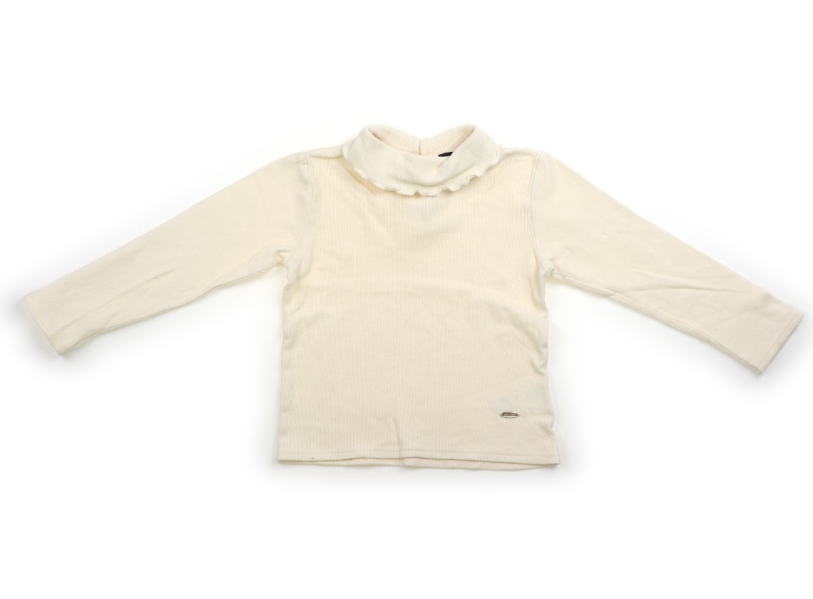 ボタンホールです。綿100%。裏微起毛です。リブカットソー。全体に毛羽立ちがあります。使用感ありますが、まだお使いいただけそうです。