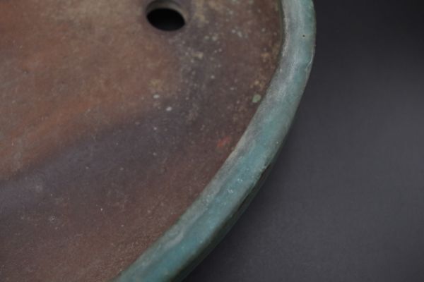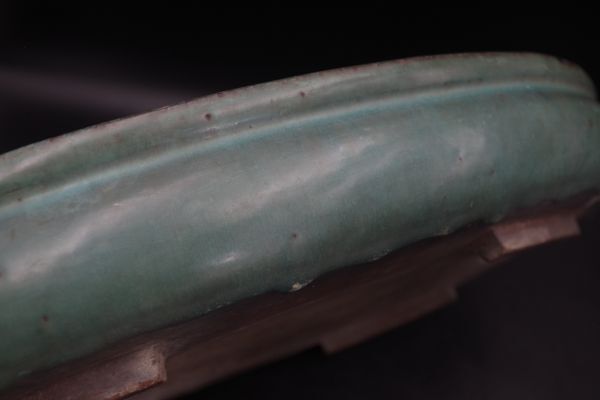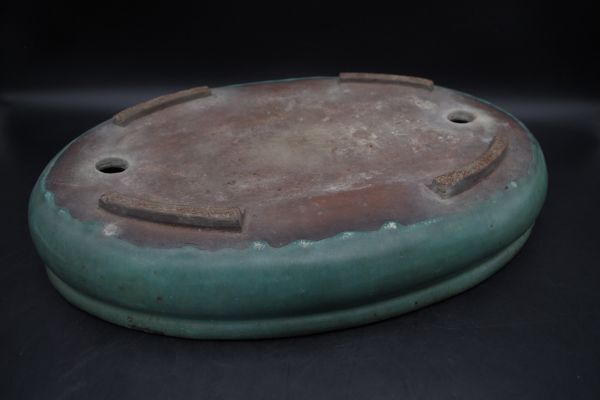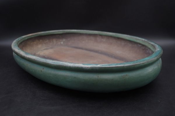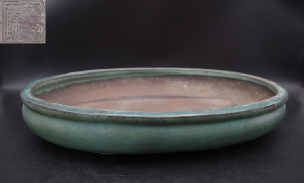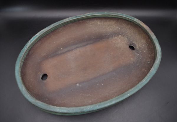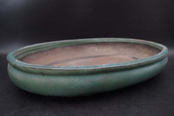 コレクター買取品 三琇一陽 緑釉外縁袋形楕円鉢 植木鉢 盆栽鉢 H179