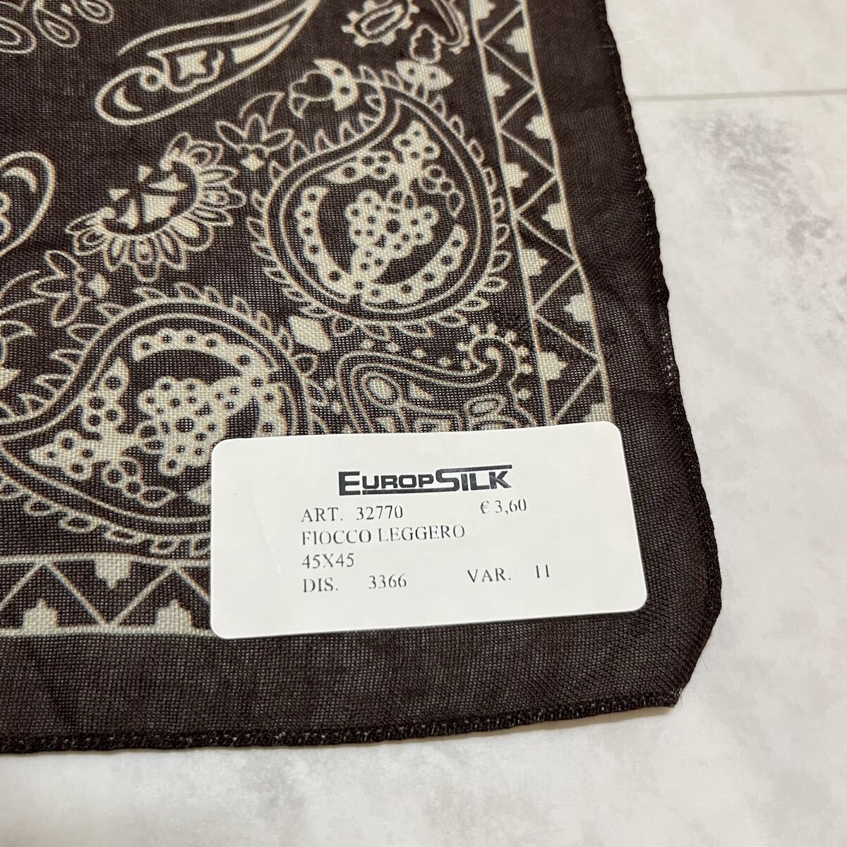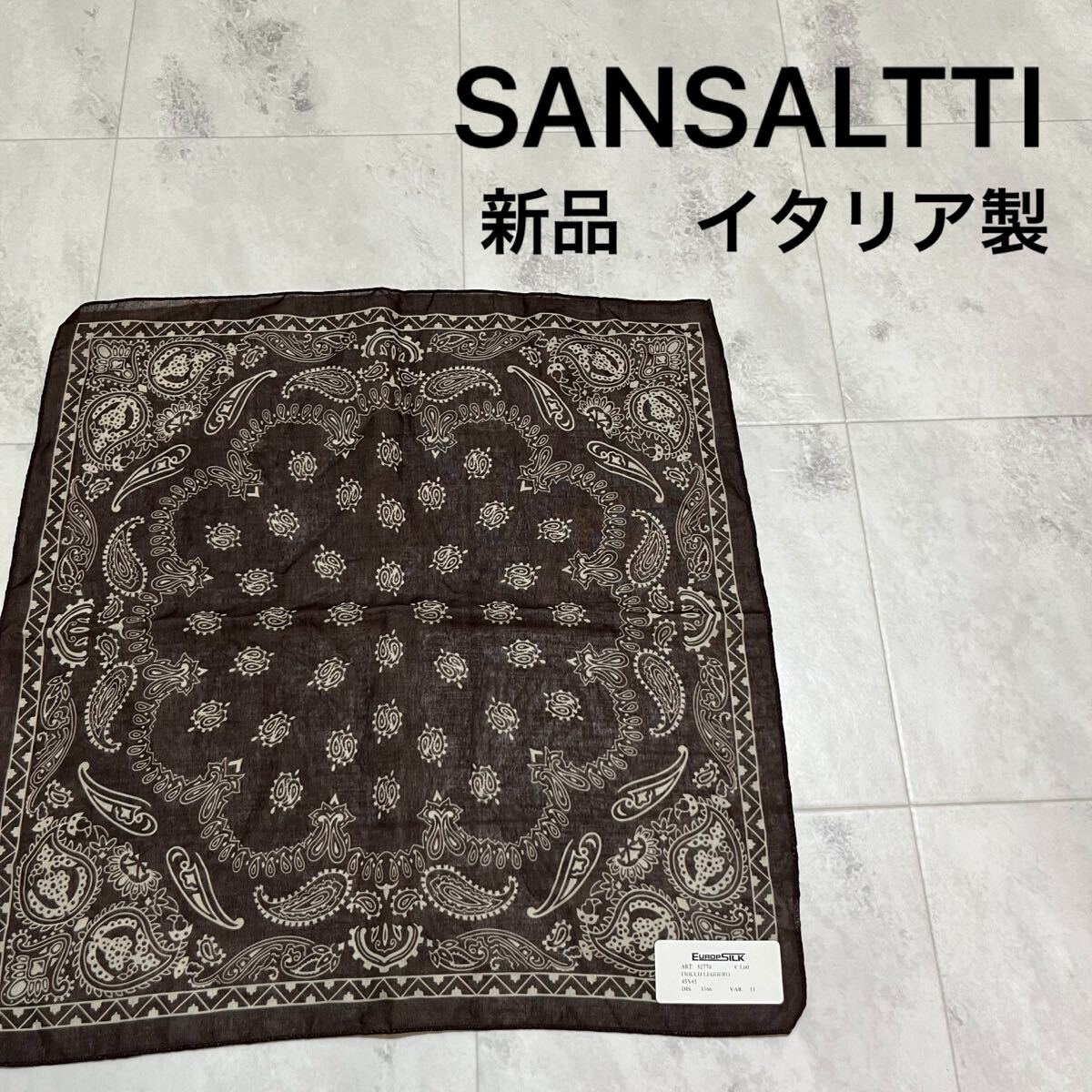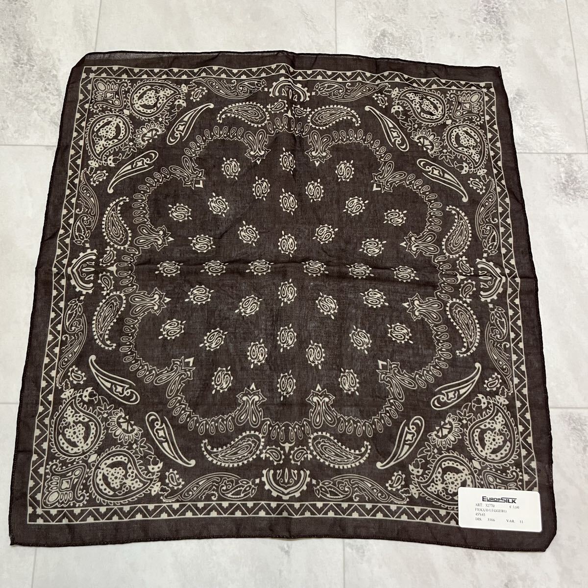 新品 イタリア製 SANSALTTI サンサルティ バンダナ ハンカチ スカーフ 総柄 ペイズリー柄 薄手 made in italy ヨーロッパ 老舗ブランド ブラウン 玉mc4054