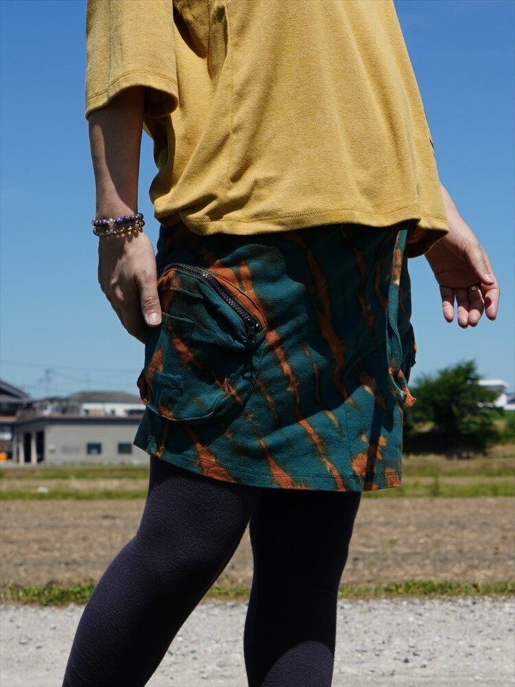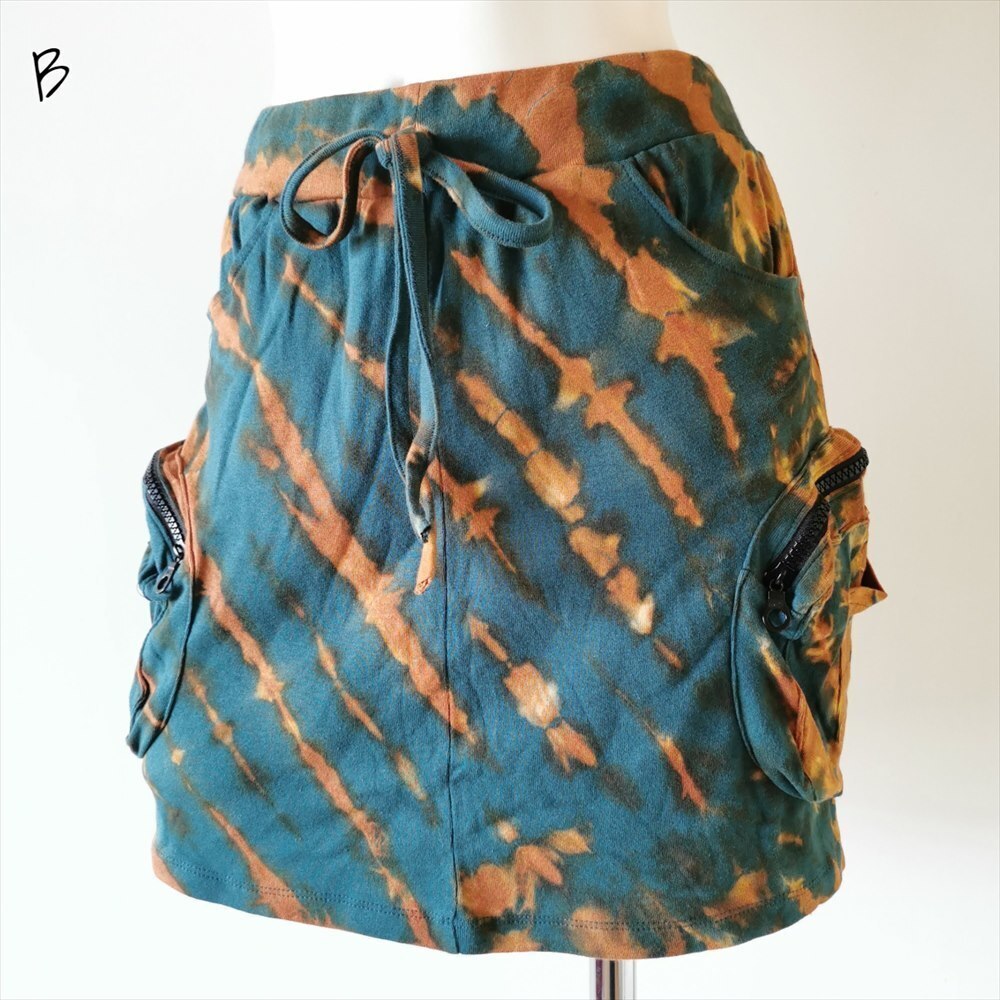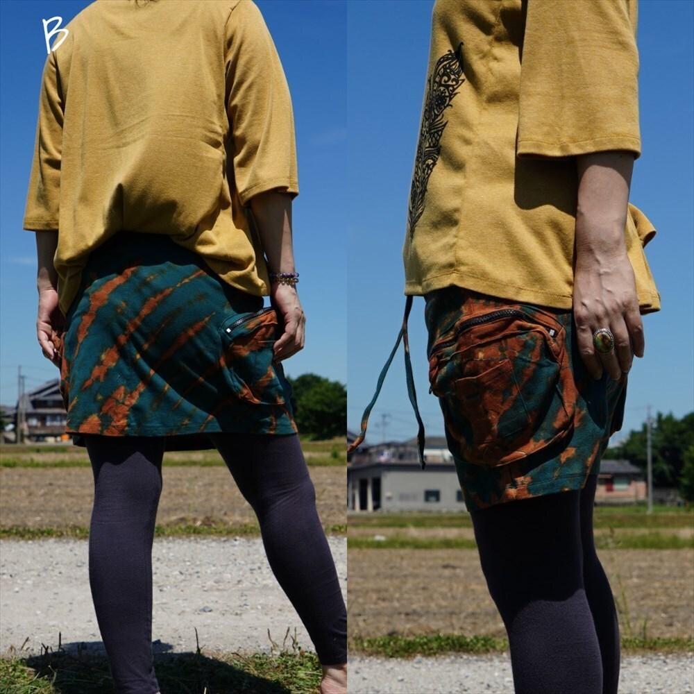 ★エスニック タイダイ カーゴスカート 送料込★新品未使用B★コットン素材 ヨガ ストレッチ アウトドア オーバースカート